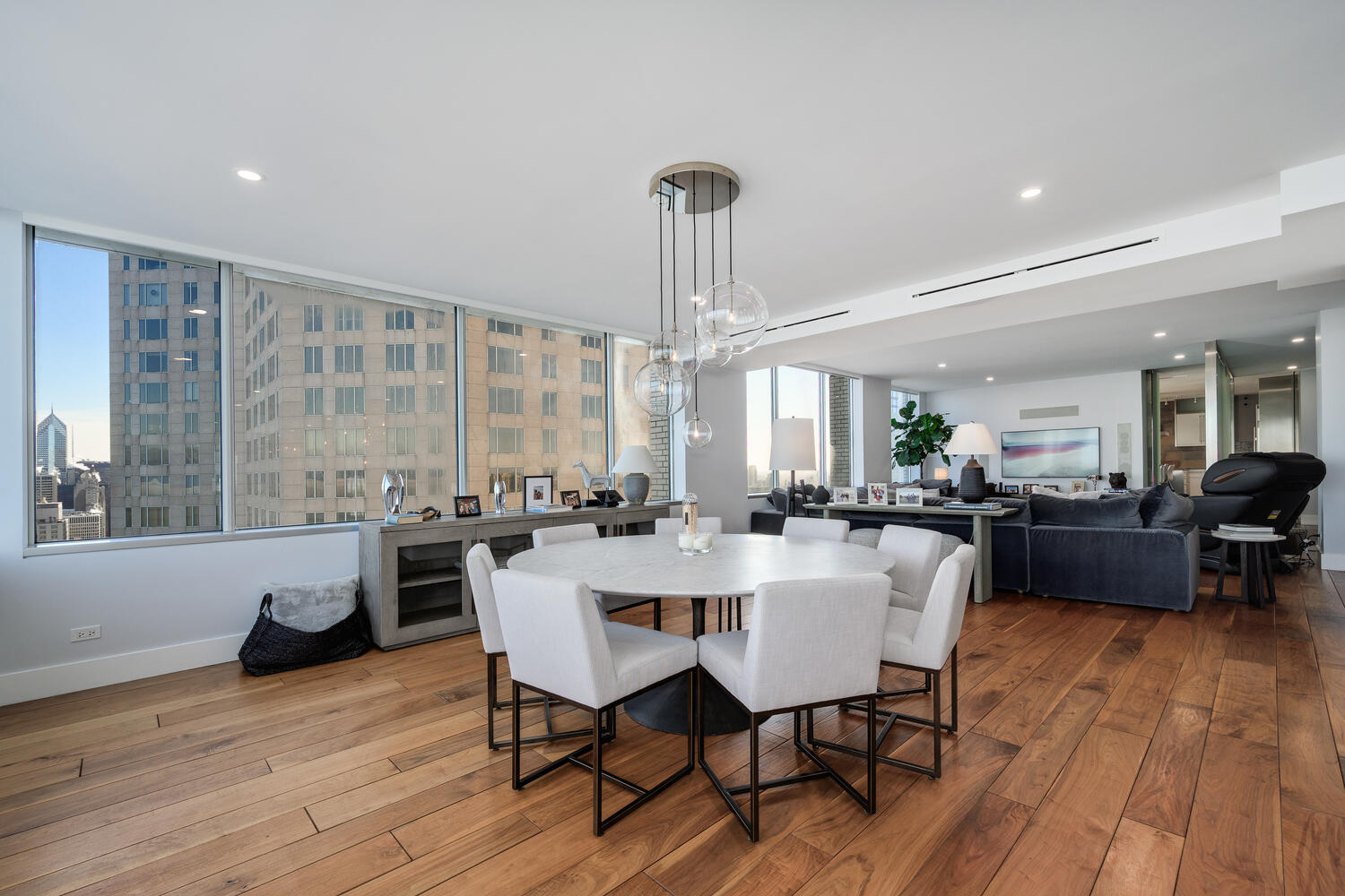 Perched on the 47th floor at the iconic intersection of Lake Shore Drive and Oak Street, this full-floor luxury condominium for sale in Chicago's Gold Coast offers a rare combination of scale, privacy, and unobstructed views. Spanning approximately 6,600 square feet, the residence delivers refined, high-rise living in one of Chicago's most prestigious neighborhoods. This exceptional home features two expansive 50-foot private terraces with 360-degree panoramic views of Lake Michigan and the Chicago skyline, creating an extraordinary indoor-outdoor living experience seldom found in Gold Coast condominiums. The residence includes five bedrooms, four full bathrooms, and two powder rooms, all within a fully renovated smart home outfitted with luxury finishes throughout. Design highlights include hand-scraped walnut hardwood floors, curated designer lighting, and meticulous craftsmanship in every room. The oversized primary suite functions as a private sanctuary, complete with a dramatic walk-in closet and dressing room, a dedicated office, and a spa-inspired white marble bathroom designed for comfort and retreat. The Bulthaup chef's kitchen is both sculptural and functional, featuring gorgeous countertops, a full Sub-Zero wall of refrigerators and freezers, premium integrated appliances, and custom cabinetry. The layout is ideal for everyday living as well as large-scale entertaining. Located within a full-amenity luxury building, residents enjoy an unbeatable Gold Coast lifestyle just steps from Oak Street Beach, the lakefront, world-class shopping, and renowned dining. This is a rare opportunity to own a full-floor luxury condo in Chicago's Gold Coast, offering iconic views, premier amenities, and an irreplaceable Lake Shore Drive address.