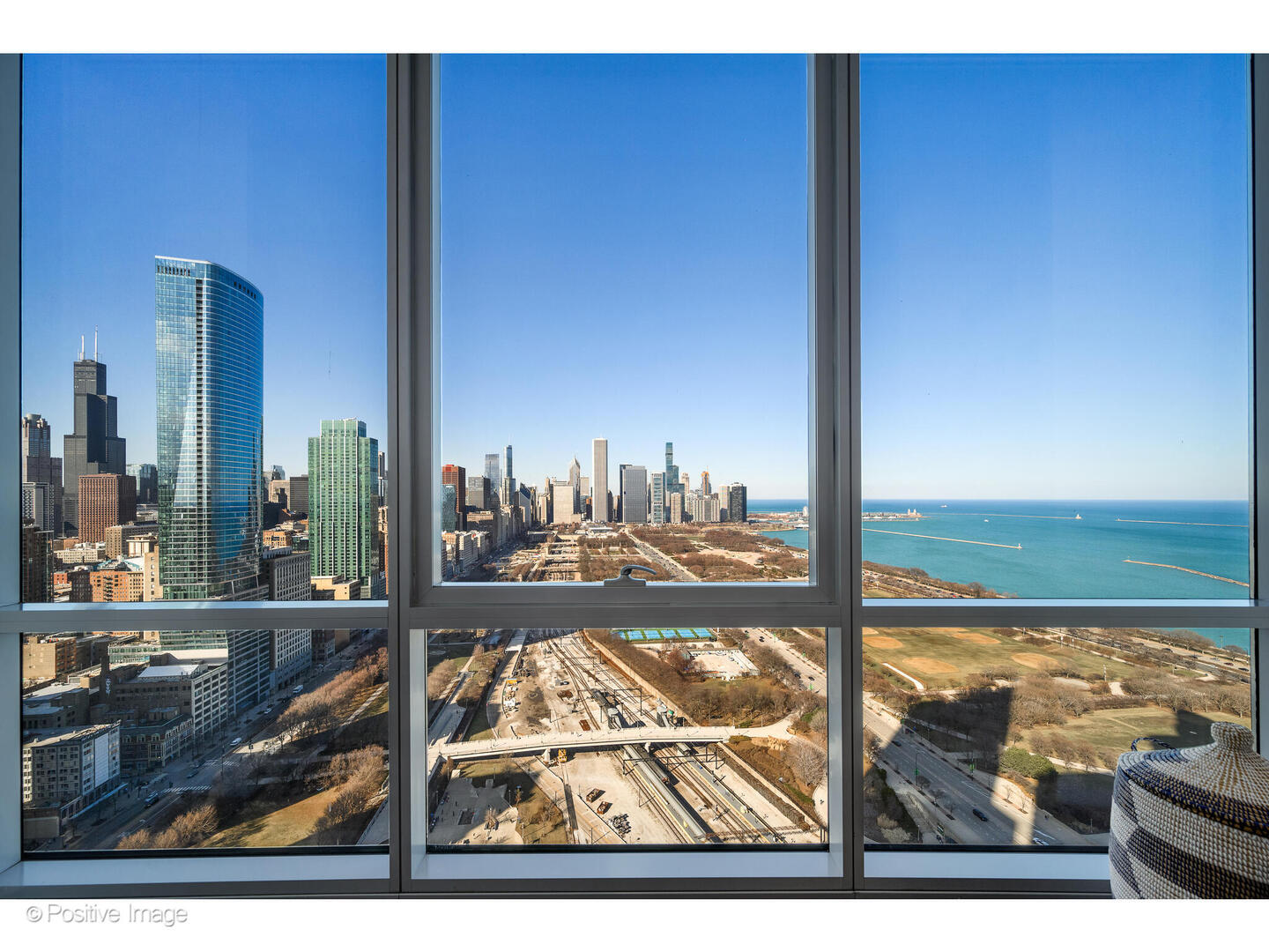 Experience luxury living in this pristine model home, where floor-to-ceiling windows frame unobstructed, outstanding views of the Chicago skyline, Lake Michigan, and Grant Park. This sophisticated 2-bedroom plus spacious den/office features a high-end kitchen with Snaidero Italian cabinetry, white quartz countertops, and a premium SubZero/Wolf/Bosch appliance package. The interior is finished with 5" wide-plank walnut flooring, a private balcony, and the convenience of in-unit laundry. The building offers world-class amenities, including a 24-hour doorman, indoor pool, fitness center, sun deck with grills, movie theater, and a children's playroom. Located steps from Michigan Avenue, Museum Campus, and Soldier Field, with effortless access to LSD and the CTA. Indoor heated parking space available for $50k.