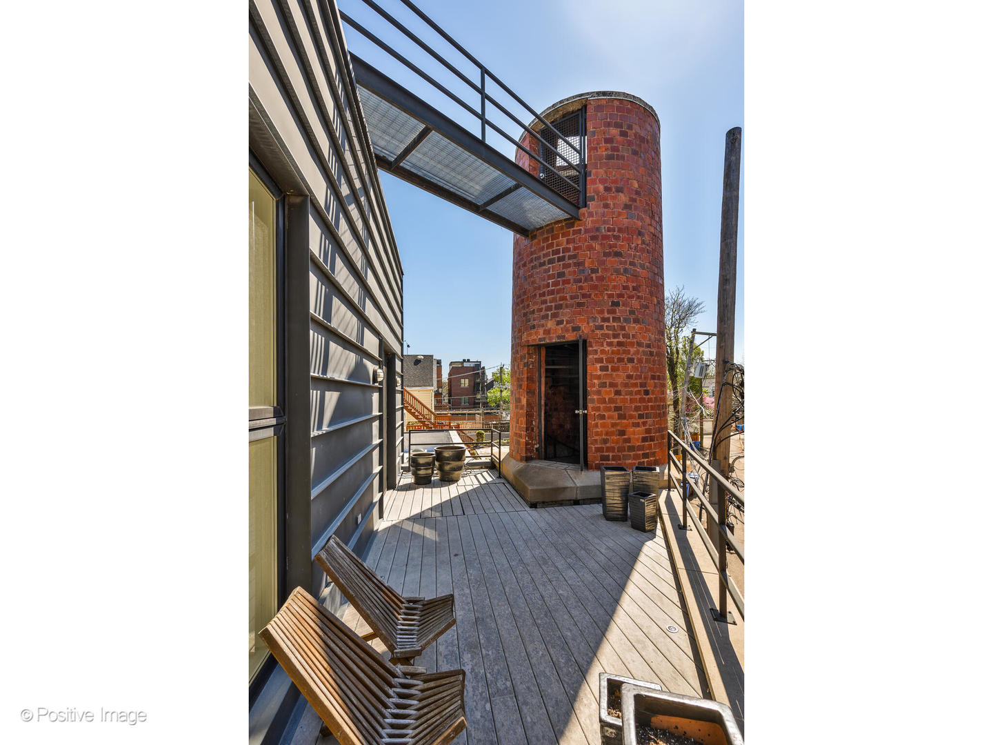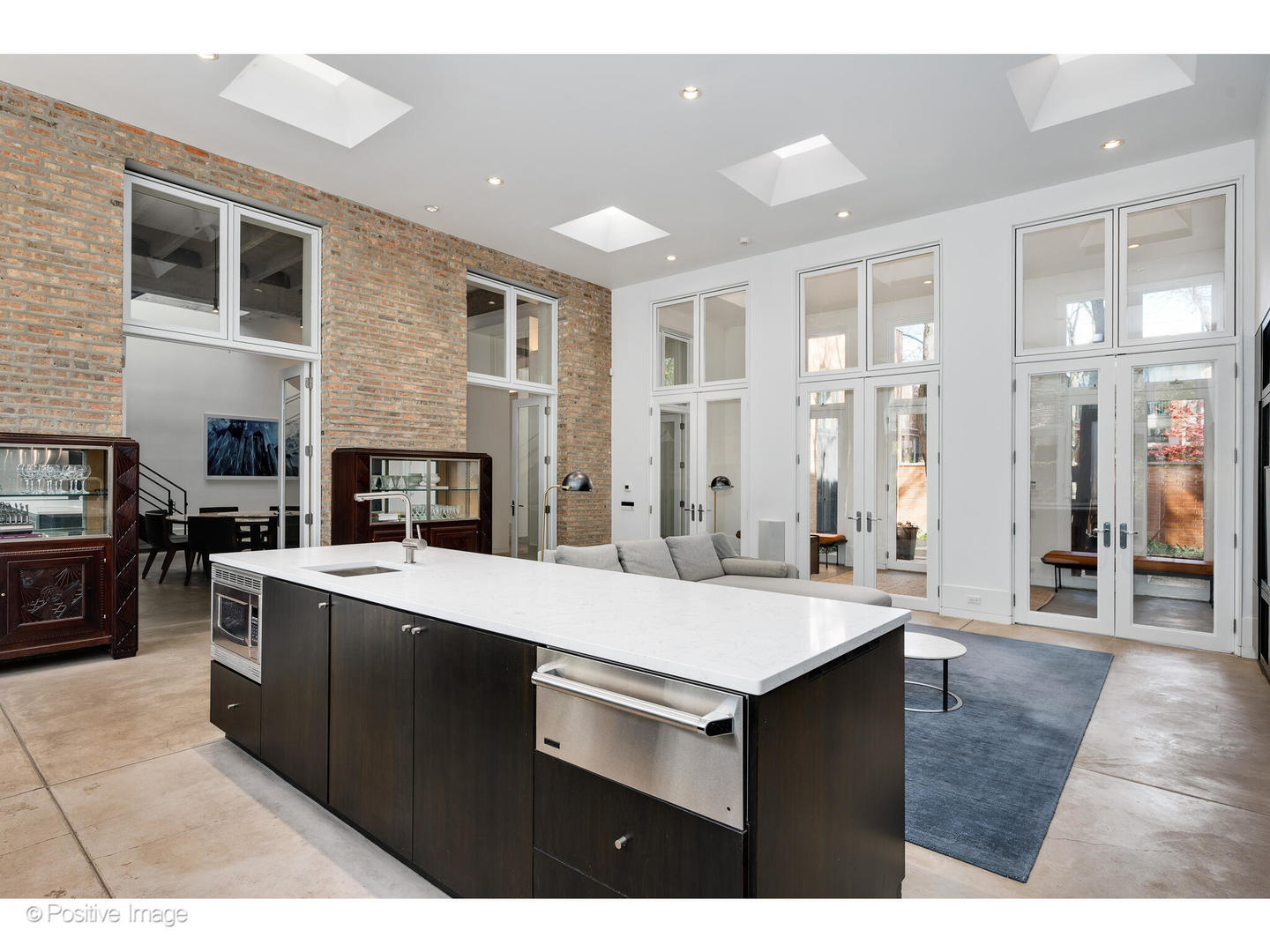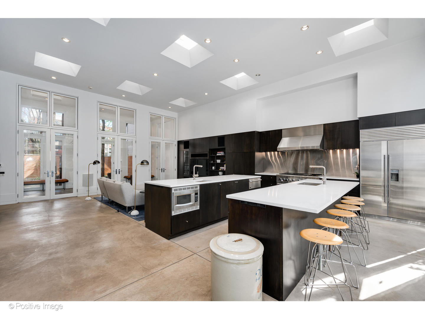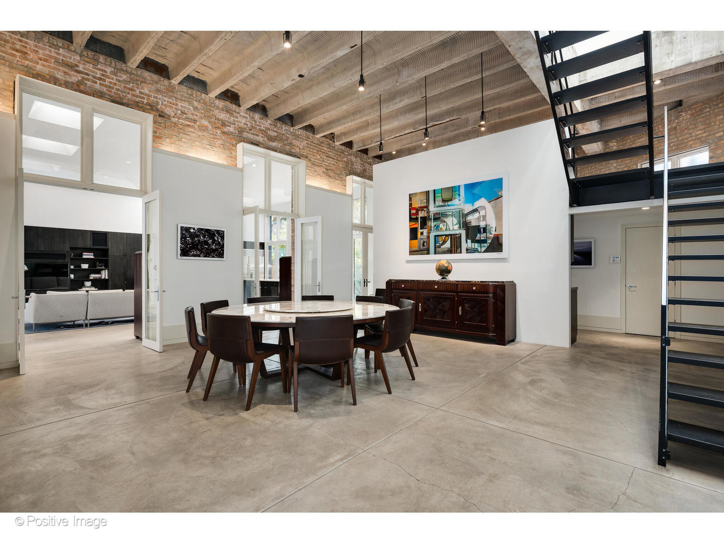 Designed by Chicago's very own Larry Booth of Booth Hansen Architects, this former factory has been detailed into an architecturally significant true loft - one of Lakeview's hidden gems! Beautifully landscaped outdoor spaces engulf the home with beauty behind the fence, which keeps the world guessing this is even a single-family home. Showcased by soaring ceilings, an abundance of natural light, cool open spaces, and even an indoor swimming pool. All come together to create an amazing property that rivals the most discerning eye. Upon entering, the gracious foyer sets a wonderful elemental tone for the home. Heated concrete floors throughout the main level are a welcome accompaniment to the raw brick walls and factory roots of yesteryear. The kitchen is an entertainer's dream, with two huge islands, a 48' range/ hood, plus custom built-ins and southern exposure that leads out to a private garden. The living and dining spaces are right out of a movie set with a steel surround fireplace and open space galore. The perfect live-work situation, a studio space with its own entry and kitchen can be accessed from this location, perfect for all of your live/work needs. The second floor is comprised of a wonderfully oversized primary suite, complete with a private deck that has tree lined landscape views of George Street. The ensuite spa like bathroom with a soaking tub, separate shower and dual vanities, makes for an amazing respite, and a clothier's dream walk-in closet completes the room. Three more bedroom suites, and a laundry room round out the second floor of living space. The pool is accessed from this level as is the roof top where the factory's original smokestack provides access to the roof, with the ability to build more interior/exterior space. An attached two car garage is the icing on the cake. An absolute gem for those wanting a modern, unique home walking to all Southport Corridor has to offer and in the Harriett Tubman elementary district.