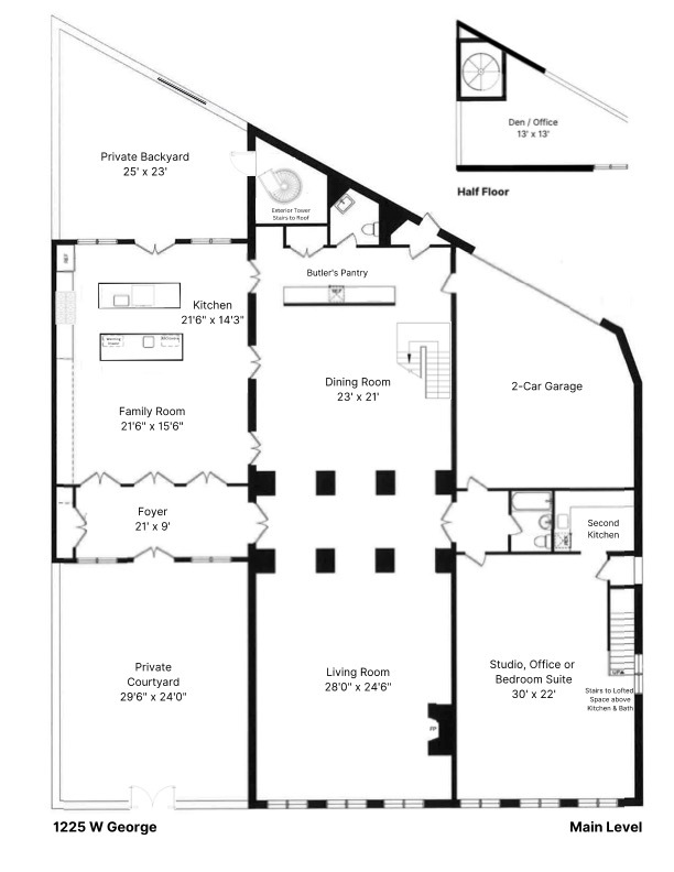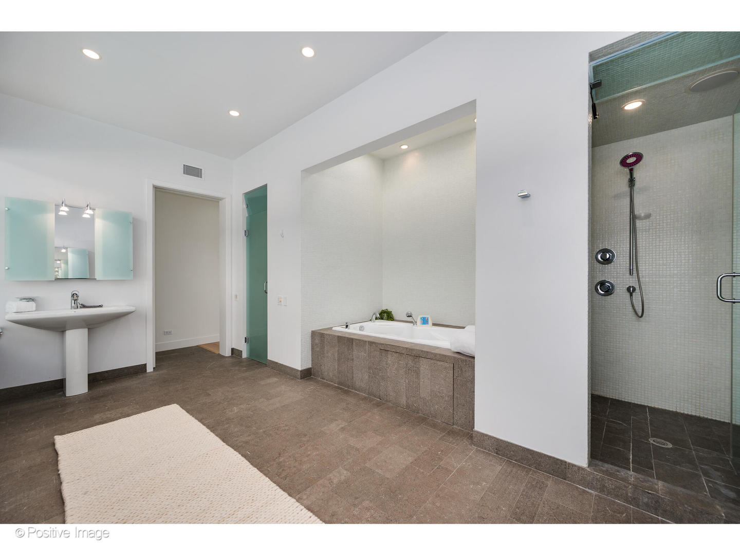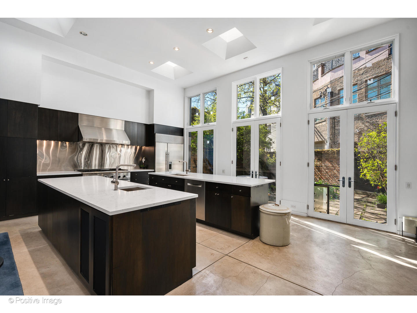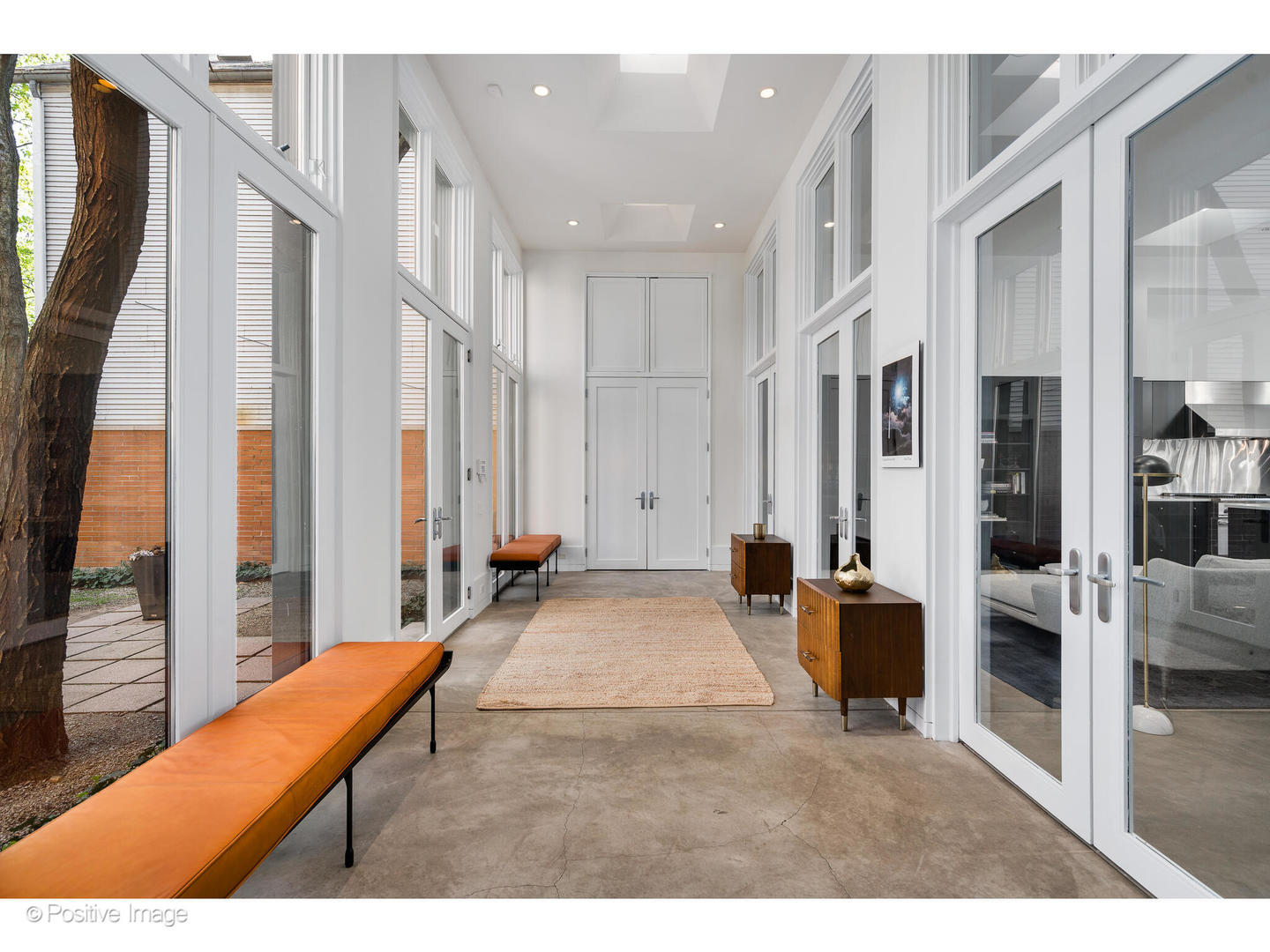 Designed by Chicago's very own Larry Booth of Booth Hansen Architects, this former factory has been detailed into an architecturally significant true loft - one of Lakeview's hidden gems! Beautifully landscaped outdoor spaces engulf the home with beauty behind the fence, which keeps the world guessing this is even a single-family home. Showcased by soaring ceilings, an abundance of natural light, cool open spaces, and even an indoor swimming pool. All come together to create an amazing property that rivals the most discerning eye. Upon entering, the gracious foyer sets a wonderful elemental tone for the home. Heated concrete floors throughout the main level are a welcome accompaniment to the raw brick walls and factory roots of yesteryear. The kitchen is an entertainer's dream, with two huge islands, a 48' range/ hood, plus custom built-ins and southern exposure that leads out to a private garden. The living and dining spaces are right out of a movie set with a steel surround fireplace and open space galore. The perfect live-work situation, a studio space with its own entry and kitchen can be accessed from this location, perfect for all of your live/work needs. The second floor is comprised of a wonderfully oversized primary suite, complete with a private deck that has tree lined landscape views of George Street. The ensuite spa like bathroom with a soaking tub, separate shower and dual vanities, makes for an amazing respite, and a clothier's dream walk-in closet completes the room. Three more bedroom suites, and a laundry room round out the second floor of living space. The pool is accessed from this level as is the roof top where the factory's original smokestack provides access to the roof, with the ability to build more interior/exterior space. An attached two car garage is the icing on the cake. An absolute gem for those wanting a modern, unique home walking to all Southport Corridor has to offer and in the Harriett Tubman elementary district.