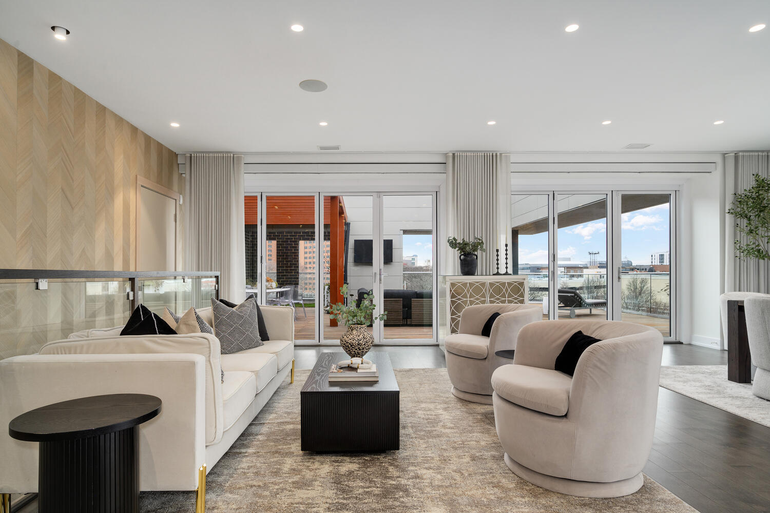 Discover a rare two-level penthouse in Lincoln Park at 1625 North Burling Street, located on a secluded cul-de-sac in one of Chicago's most desirable neighborhoods. Unit 401 offers a rare combination of privacy, architecture and expansive outdoor living. Situated in an intimate boutique building, this top-floor residence features six bedrooms, four full and two half bathrooms, and three private outdoor spaces, including an extraordinary 1,200-square-foot rooftop deck with panoramic Chicago skyline and south and sunset views. A private elevator opens directly into the home, immediately setting the tone for this light-filled urban retreat. Designed by acclaimed architect Pappageorge Haymes and finished with custom interiors by Catherine Andrews, the residence showcases thoughtful scale, refined materials, and seamless indoor-outdoor living. Floor-to-ceiling retractable glass doors flood the home with natural light and connect the main living spaces to multiple terraces-ideal for entertaining or everyday relaxation. The heart of the home offers a chef-caliber kitchen outfitted with Italian cabinetry and premium appliances, including a Wolf six-burner range with griddle, full-size Sub-Zero refrigerator, dual wine refrigerators, and a complete suite of Miele appliances-speed oven, coffee system, and dishwasher-designed for both daily living and hosting at scale. A dramatic gallery corridor leads to the primary suite, a true private sanctuary featuring custom built-ins, a tree-lined balcony, and a spa-inspired bath with sculptural soaking tub, steam shower, and an expansive walk-in closet with center island, dressing benches, dedicated shoe storage, handbag displays, and custom cabinetry. A second en-suite bedroom and half bath completes the main level. The lower level offers a spacious media or recreation room accented by custom white oak millwork and Maya Romanoff wallcoverings, opening to its own private balcony overlooking the peaceful street below. Four additional bedrooms and two-and-a-half bathrooms provide flexibility for family, guests, or home offices. Additional features include a Savant smart home system controlling lighting, automated shades, music, and televisions, as well as a private two-car garage with effortless access. Ideally located near Lincoln Park's premier dining, shopping, and cultural destinations, including the North Clybourn and Armitage corridors, and within the Oscar Mayer School District, this residence represents a rare opportunity to own a luxury penthouse in one of Chicago's most sought-after neighborhoods.