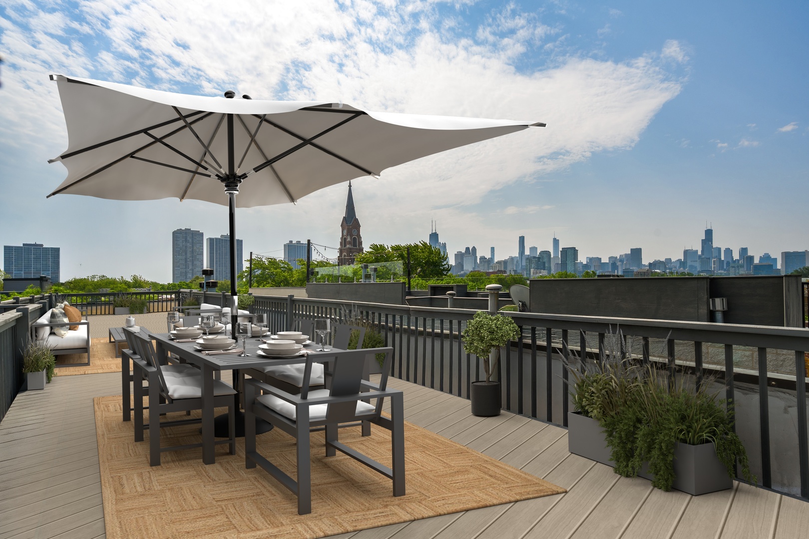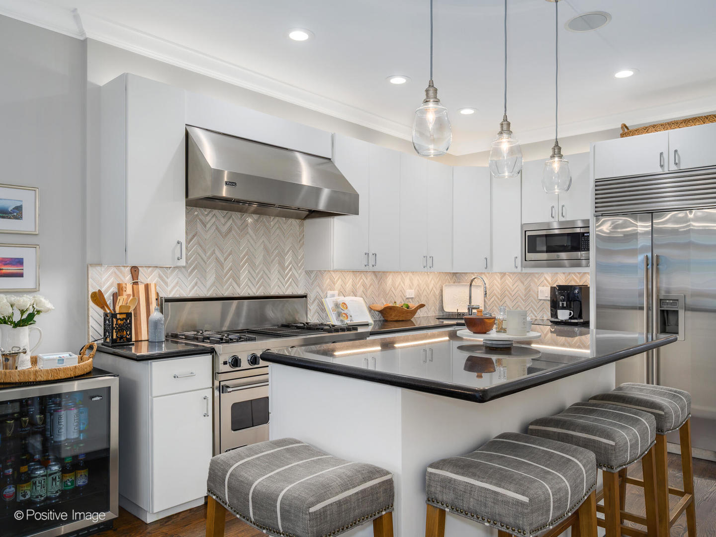 Nestled on one of Lincoln Park's most coveted blocks, this sophisticated penthouse offers over 2,000 square feet of thoughtfully designed interior space and three private outdoor areas, including a rooftop terrace with sweeping skyline views. Vaulted ceilings and expansive windows fill the main level with natural light, complementing the oak hardwood floors and beautiful fireplace. The open-concept living and dining areas flow seamlessly into the perfectly designed white kitchen equipped with Viking, Bosch, and Sub-Zero appliances. Two generously sized bedrooms complete the main level. The second level features the primary suite with dual walk-in closets, an updated spa bath with a soaking tub and glass-enclosed shower. A lofted flex space is ideal for a home office. The second-level terrace leads to the rooftop deck with incredible city views. One parking space in the detached garage included in the price. Ideally located near the lakefront, public transit, and the best of Lincoln Park's dining and shopping.