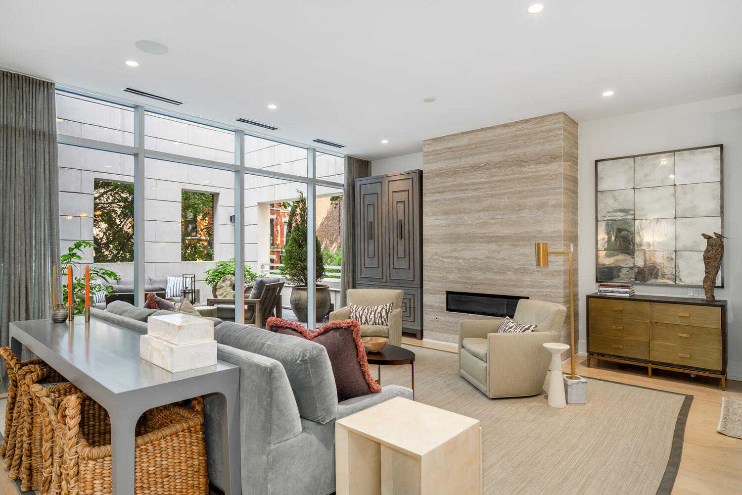 This is a very special opportunity for very private living while within a boutique elevator building in the perfect East Lincoln Park locale. With both private direct access entrance to your home and attached two car parking, or use the building front entrance, this maisonette offers the most fabulous of city living. Upon entry, a most gracious two-level foyer welcomes you. A beautiful library/lounge or fourth bedroom plus a full bath, is located here. This space also features the best mudroom outfitted with a dog wash, plus direct access to the attached garage parking for two cars. The main living space offers outstanding custom finishes. The wide-open kitchen, living, and dining areas are flanked by two very large, sunny outdoor spaces with easy direct access, perfect for hosting and entertaining. The living space has a custom book matched marble fireplace and accommodates large, gracious furnishings. Offering the finest of finishes throughout, this true chef's kitchen with Italian Ernestomeda cabinetry, integrated Subzero and Wolf appliances, and fantastic storage, this home offers details not often found. Three generously sized bedrooms are found on this same level, including the truly luxurious primary with a sensational closet and a spa-like bath with a free-standing tub, dual sinks, and an oversized shower. The two additional bedrooms are generous in size; one ensuite with the other having access to the nicely appointed hall bath. Bedroom level laundry and a designer powder room complete this level. Steps from the lakefront, fabulous shopping and dining, plus public transportation, this home truly has it all!