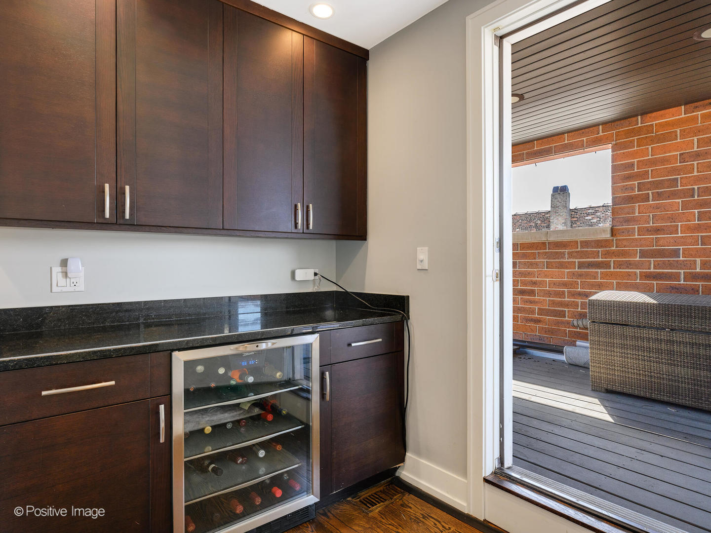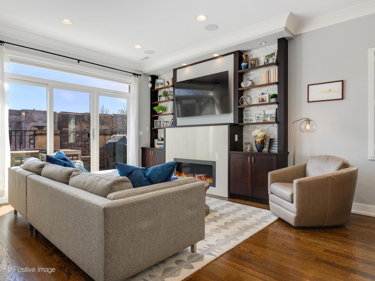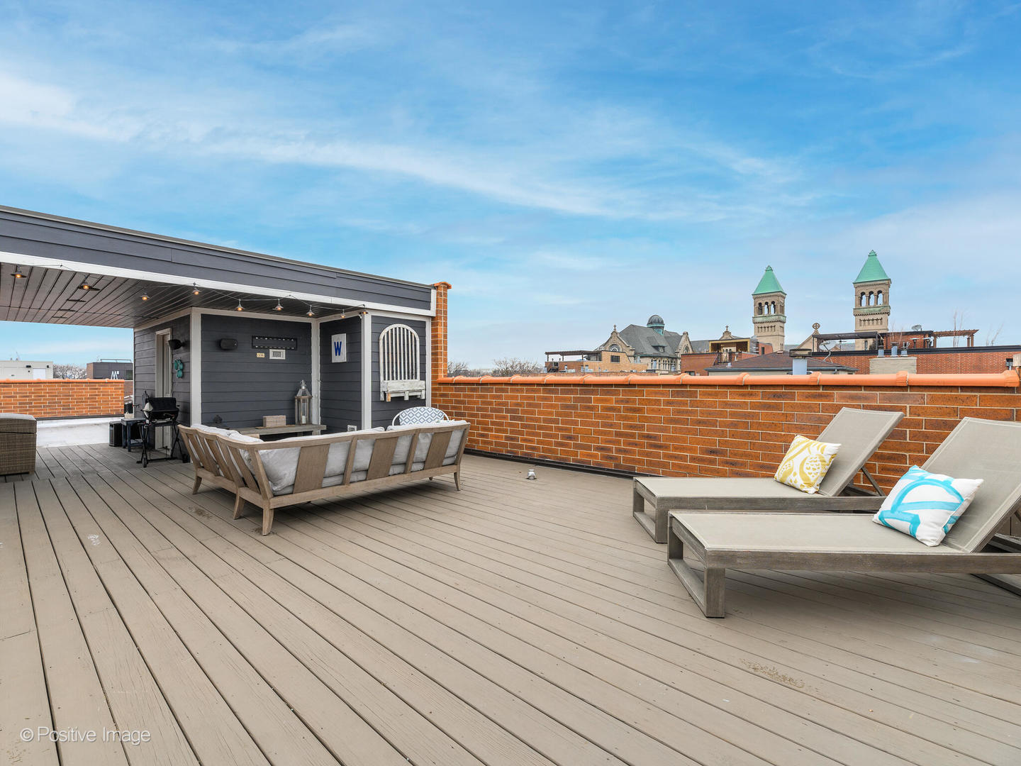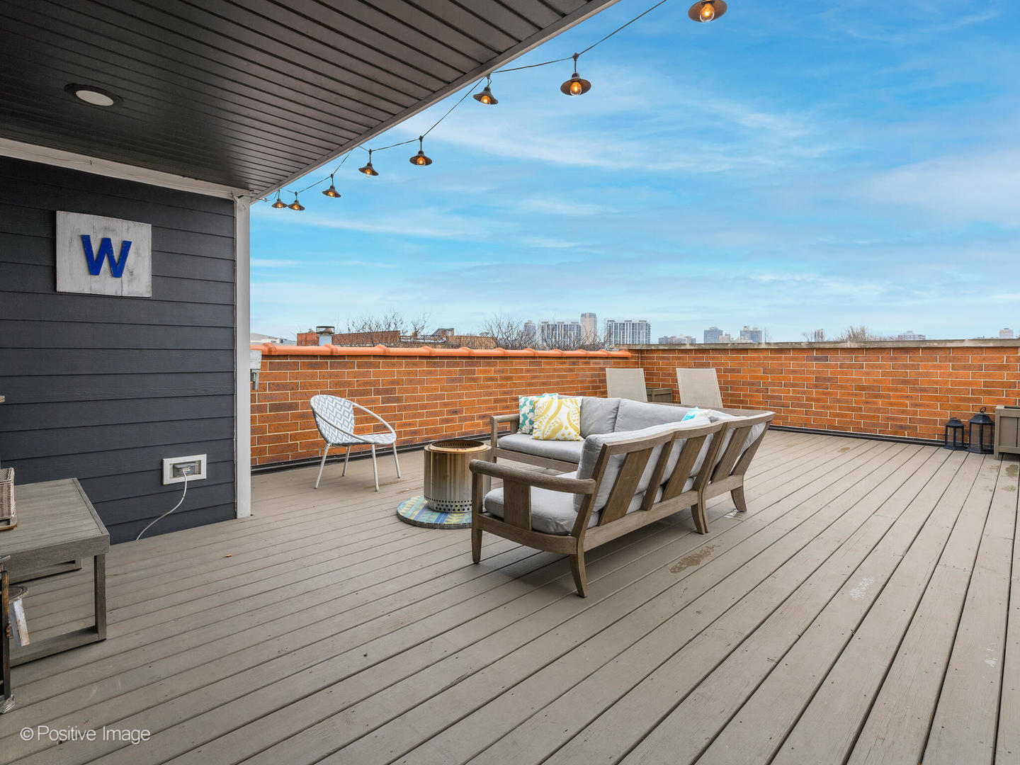 Fabulous opportunity for a like-new construction top floor condo in a happening Lincoln Park location. This stylish, well-built home offers a desirable living room layout with classic built-ins surrounding a gas fireplace, and ample space for a dining table. The living and dining areas open onto a front terrace that spans the width of the entire building for an unbelievable entertaining or grilling space. The open kitchen features quartz countertops and top end stainless appliances. There is also bar seating for informal dining. A spacious primary suite offers a walk-in closet and bath w/steam shower, body sprays, and double sinks. There is a good sized second bedroom and a well-appointed hall bath. The penthouse level is the perfect office or sitting room with a dry bar and wine fridge and offers direct access to the exclusive rooftop deck. A portion of the deck is covered, making it usable in any weather, and is also wired for sound and gas - a truly fabulous space to entertain and host. Hardwood flooring throughout and laundry complete this fab home. Garage parking for one car included. This location cannot be beat and is walking distance to fantastic shopping and dining along Armitage, Webster, and Sheffield and in Oscar Mayer School!