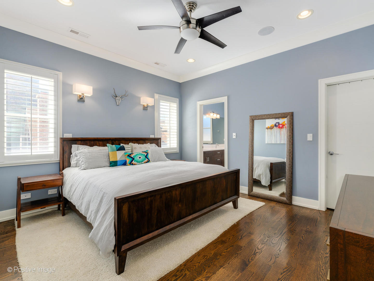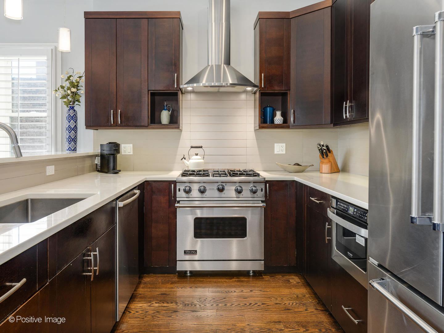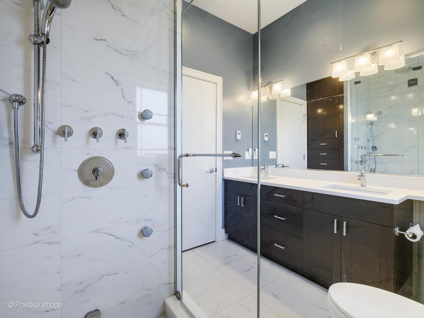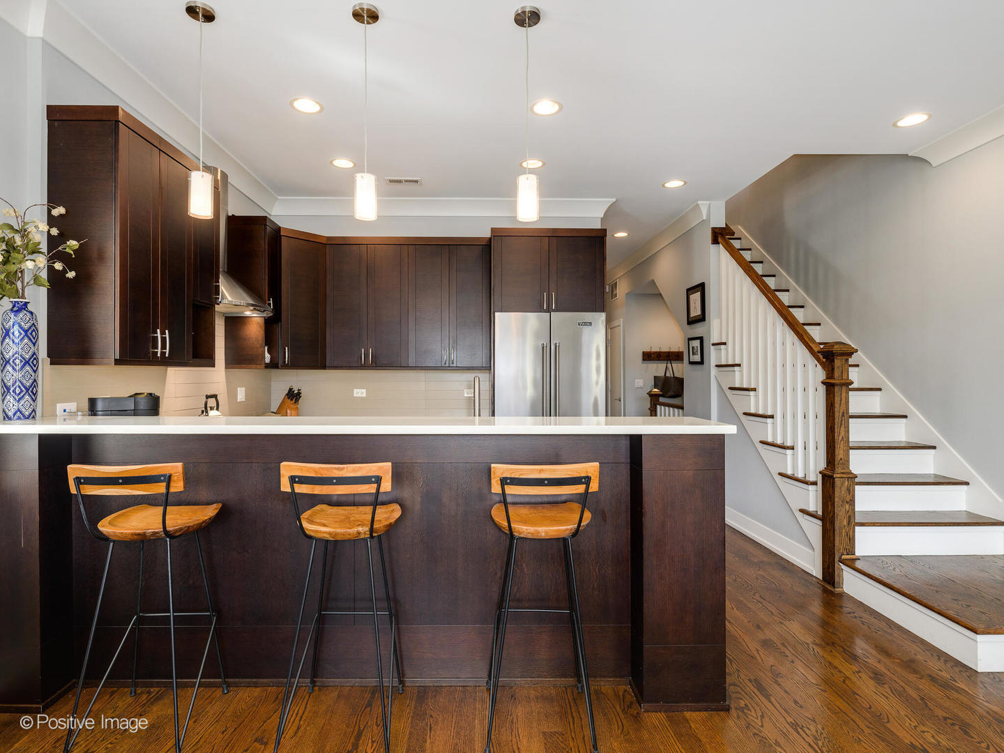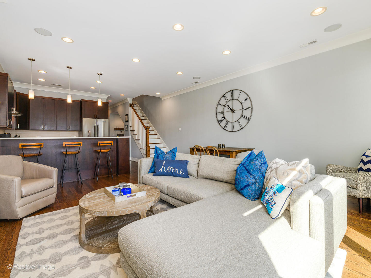 Fabulous opportunity for a like-new construction top floor condo in a happening Lincoln Park location. This stylish, well-built home offers a desirable living room layout with classic built-ins surrounding a gas fireplace, and ample space for a dining table. The living and dining areas open onto a front terrace that spans the width of the entire building for an unbelievable entertaining or grilling space. The open kitchen features quartz countertops and top end stainless appliances. There is also bar seating for informal dining. A spacious primary suite offers a walk-in closet and bath w/steam shower, body sprays, and double sinks. There is a good sized second bedroom and a well-appointed hall bath. The penthouse level is the perfect office or sitting room with a dry bar and wine fridge and offers direct access to the exclusive rooftop deck. A portion of the deck is covered, making it usable in any weather, and is also wired for sound and gas - a truly fabulous space to entertain and host. Hardwood flooring throughout and laundry complete this fab home. Garage parking for one car included. This location cannot be beat and is walking distance to fantastic shopping and dining along Armitage, Webster, and Sheffield and in Oscar Mayer School!