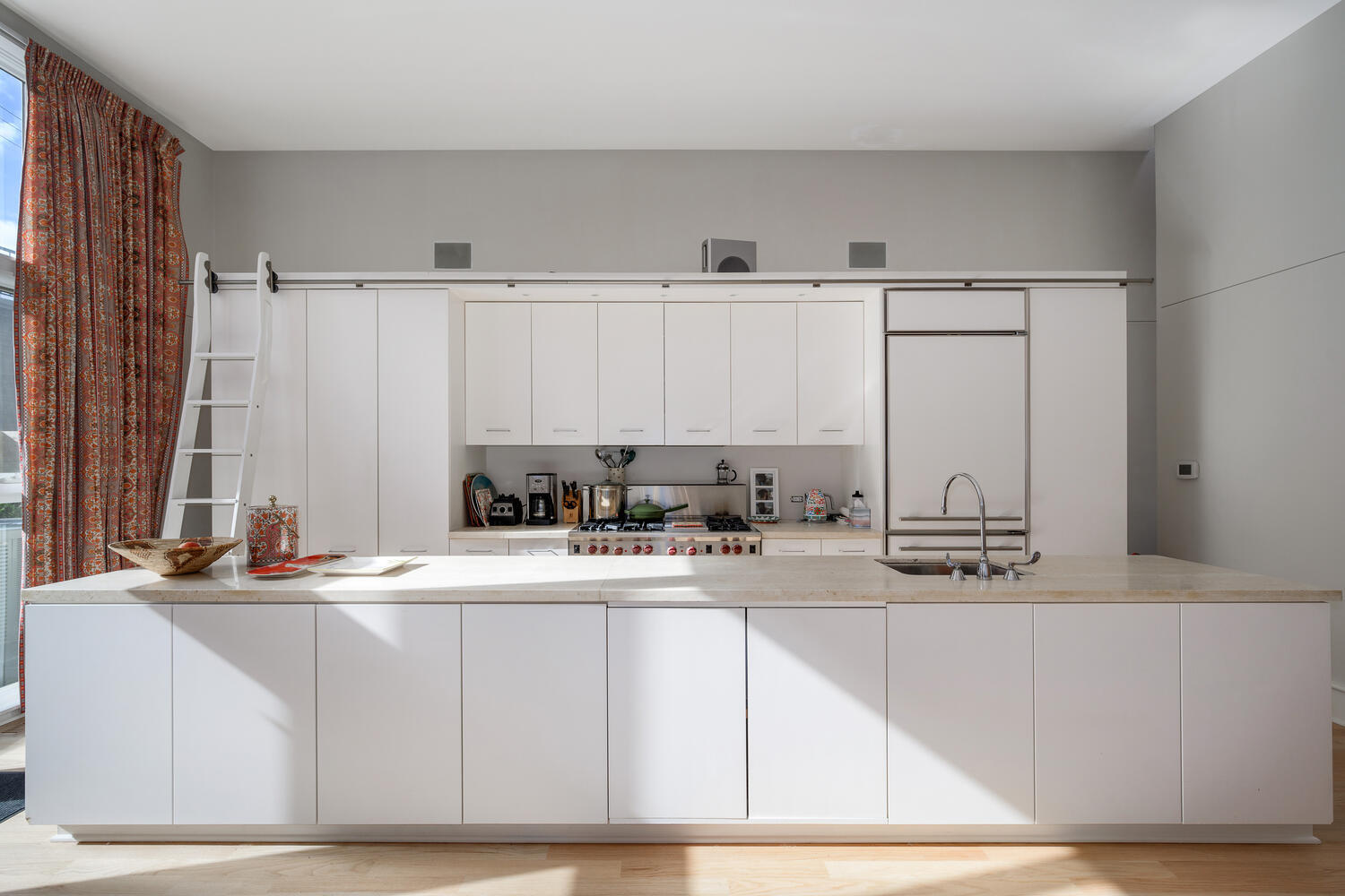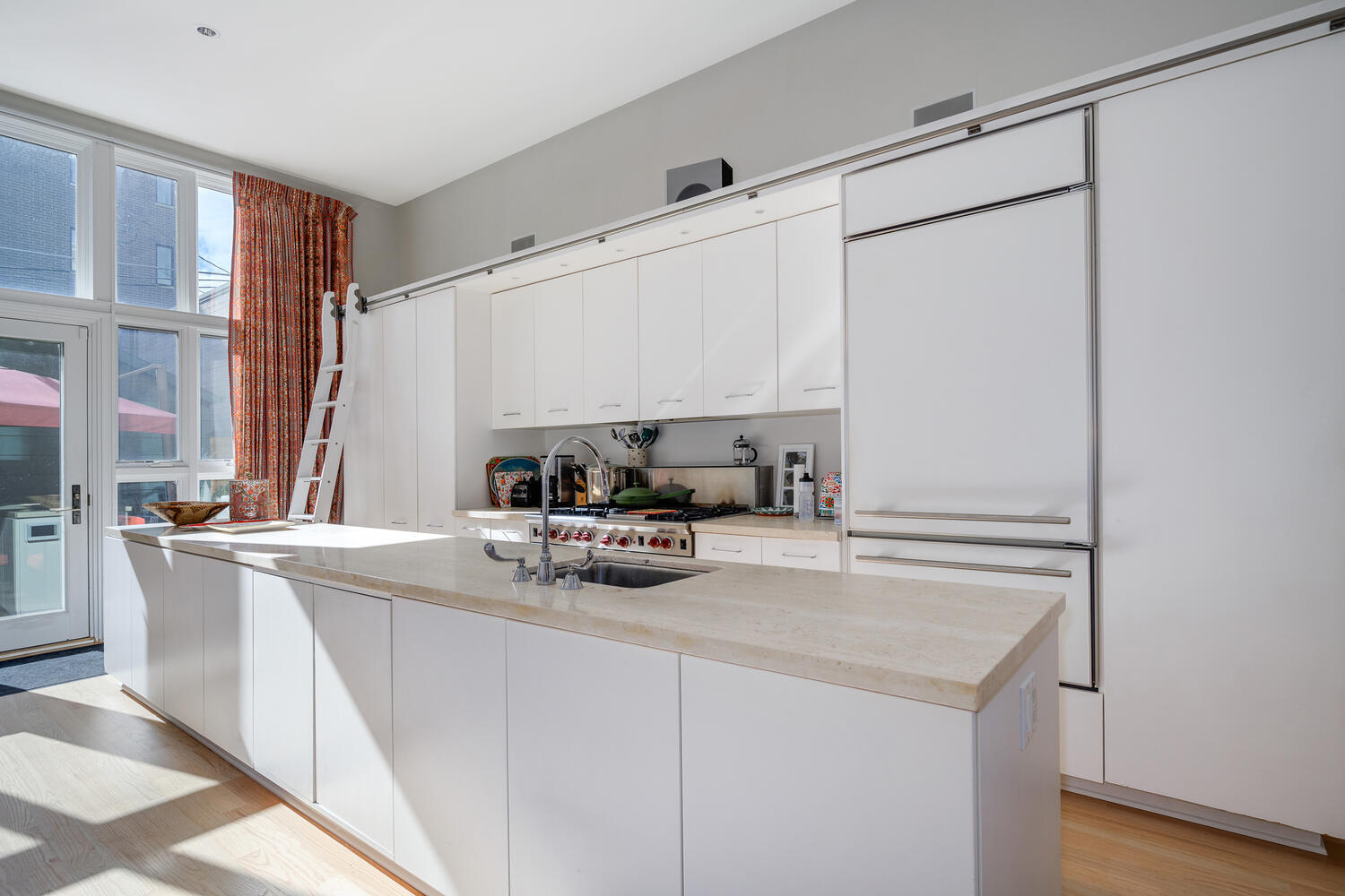 Available for the first time in fifteen years, this architecturally notable home is the perfect opportunity to land on one of Lincoln Park's most desirable blocks! This one-way, secret block leads directly into Oz Park. This very special home has been featured in Architectural Digest, designed by Larry Booth, and built by the very gentleman who constructed the Houston Galleria. Standing just two stories tall, this home features wide open modern spaces flooded by a giant skylight, which offer a great space to live and entertain. Upon entry, a concealed home office fits in with beautiful vistas to the front. Volumous living and dining rooms with a fireplace and amazing wall space are perfect to showcase artwork. The chef's kitchen is located at the rear of the home with a large island, top end appliances, and a built-in library ladder for easy access to all of the amazing storage. There is an adjacent eat in space or great room for casual living, and all of this overlooks the lush patio/backyard through huge windows. The centrally located, architecturally significant floating staircase leads to the second level of the home, featuring two large bedrooms, two baths, a true laundry room, and great storage. Light pours in through the central atrium with large skylights. A perfectly concealed hatch door leads to the basement for additional storage or craft area. With a new roof and new hardwood floors throughout, this home is move in ready! Steps to Oz Park, Lincoln Schools, and the best shopping and dining in Lincoln Park and Halsted and Armitage! Two car garage too!