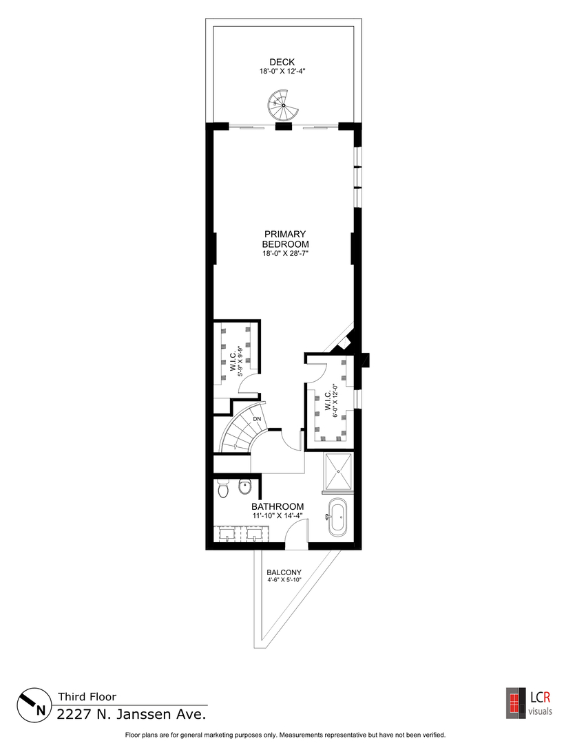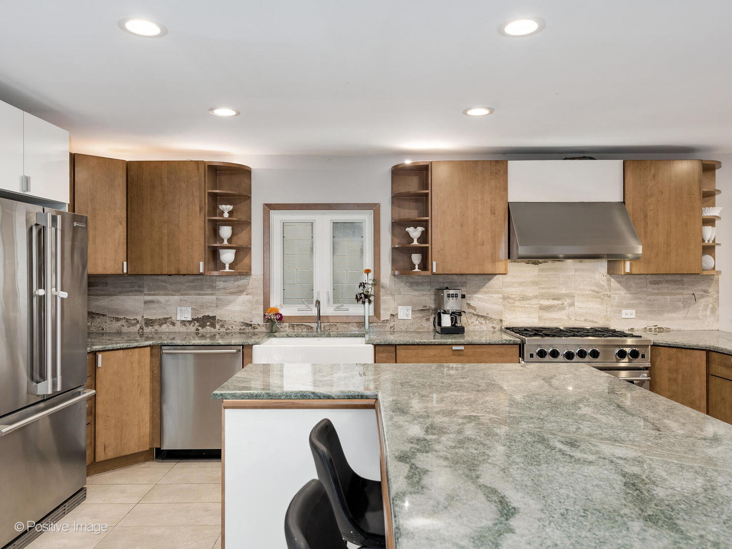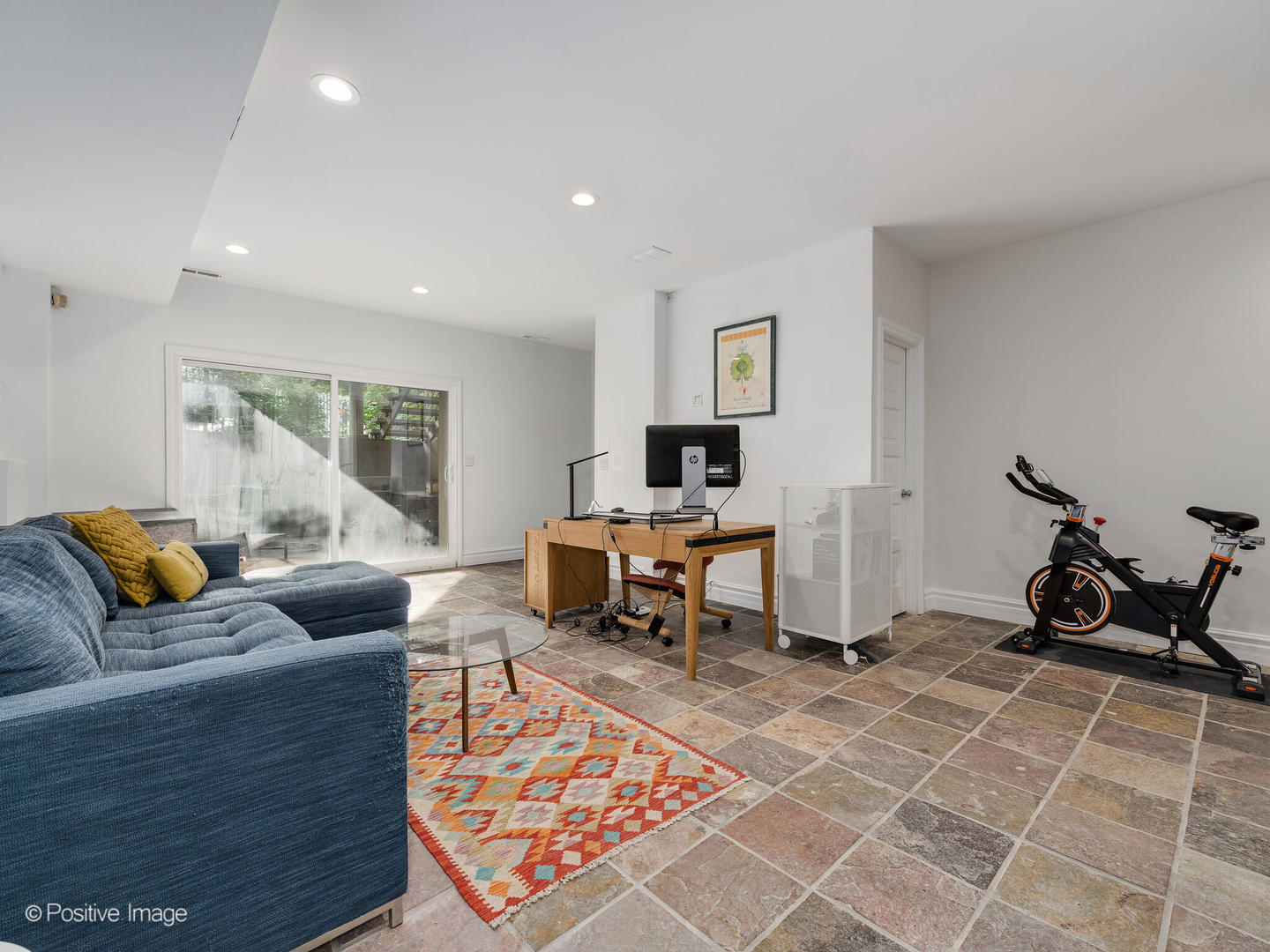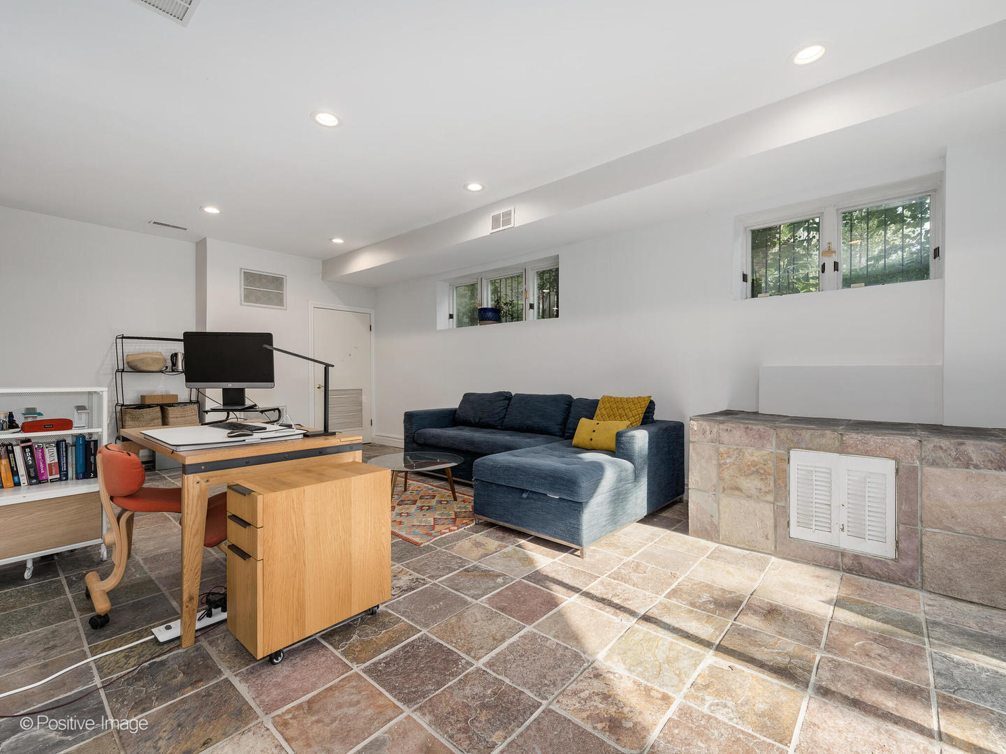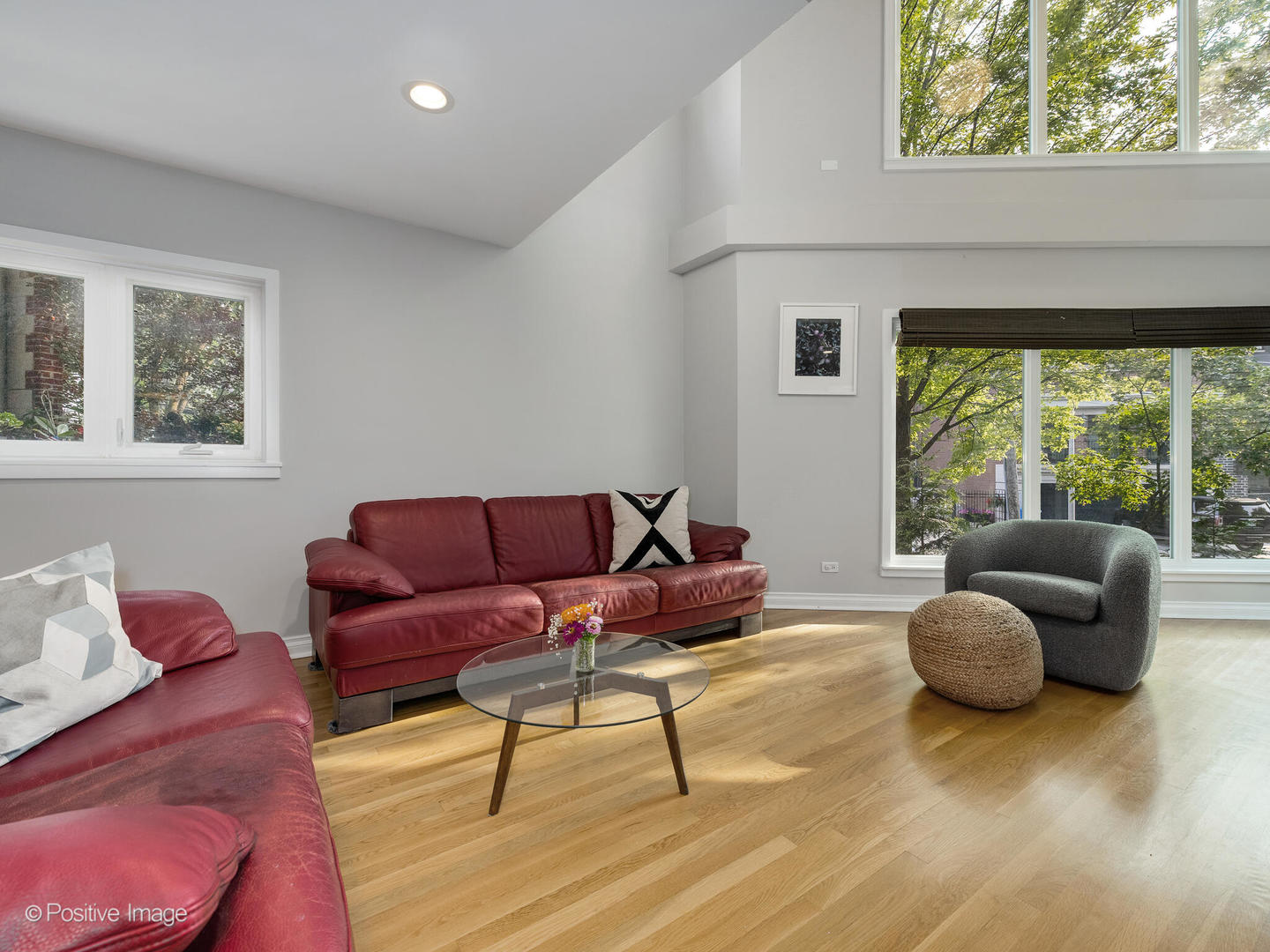 Fabulous, one-of-a-kind home on a quiet, one-way street in the heart of Lincoln Park. Wonderful natural light streams in from the large south and west corner two-story windows. The main level of the home features an open, spacious layout with two story living room and is perfect for entertaining. The kitchen features a Blue Star range and Electrolux stainless appliances, solid maple cabinets, and a large granite island with seating on 3 sides. Just a few steps up from the kitchen is an expansive family room/play space. The main level also offers a powder room and full laundry room with side-by-side washer and dryer. A curved staircase leads to second level which features two spacious bedrooms, a renovated full bathroom, and a reading/office nook. The enormous primary suite is on the top level and features a sitting area with fireplace in addition to room for a home office. It also boasts two spacious walk-in closets and a newer oversized all white bath with imported porcelain flooring, separate glass shower, free-standing soaking tub, dual sink vanity, and a bidet. There is walk-out roof access with an additional stairway to the tip-top roof for opportunity to create a fantastic deck space with skyline views. The lower level of the home features another den/office space and walks out to a large front patio. The 4th bedroom and bathroom complete the lower level. Two-car garage with electric charger. Completely renovated in 2014, including a new roof, exterior facade redone and sealed, all new mechanicals, new doors, and new kitchen and baths. Recently, new windows were installed and the exterior of the home was maintained as well as painted. Walk to all the great neighborhood shops, restaurants, parks, and Oscar Mayer School.