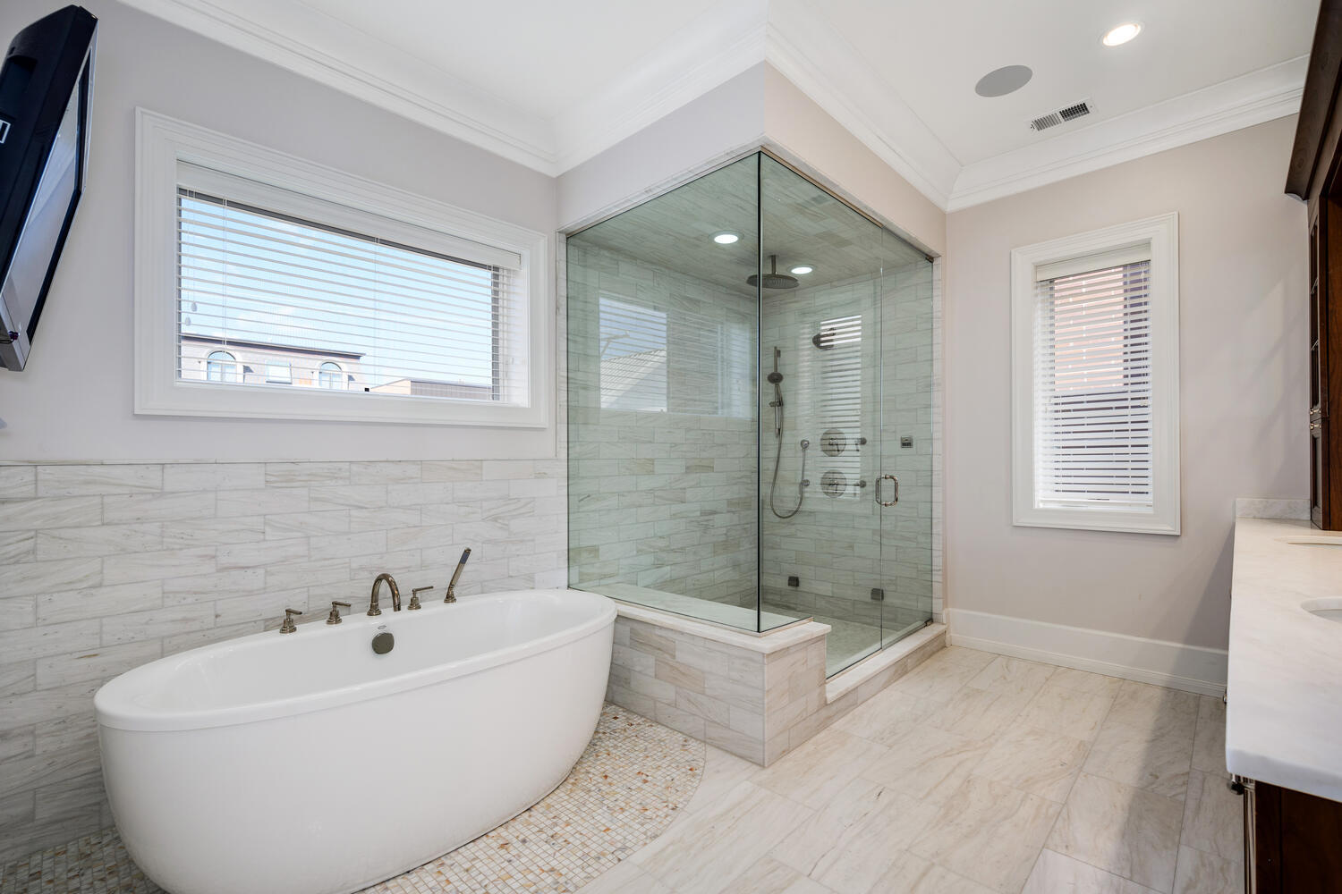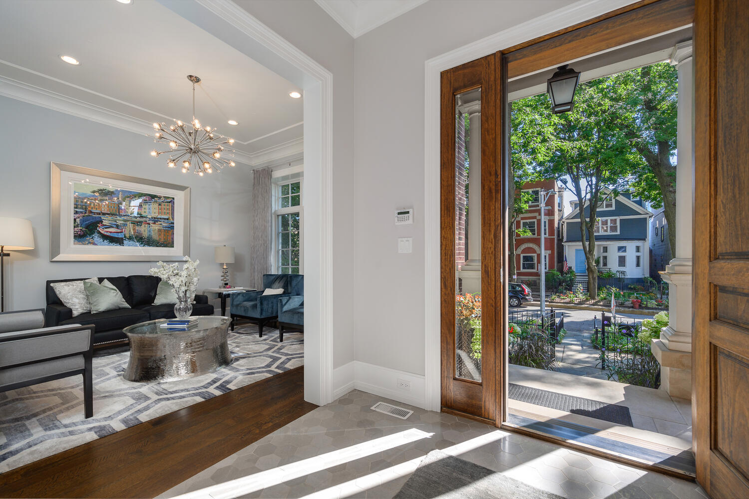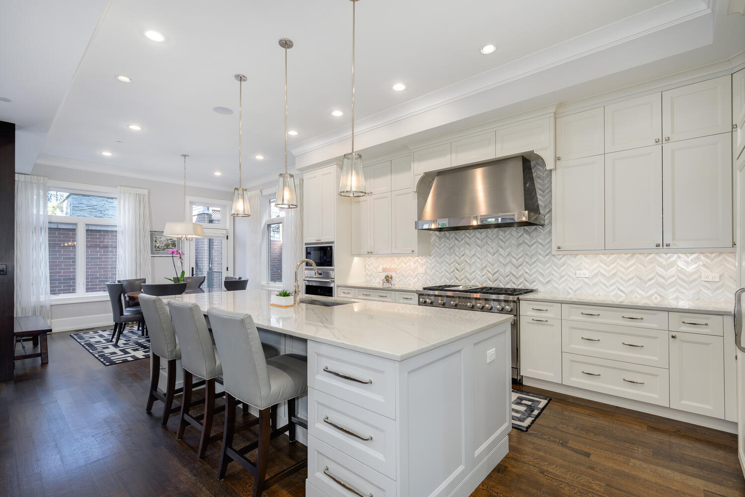 Enjoy living on an extra wide, 40' lot on this beautiful Lincoln Park tree lined block. This newer construction custom home feels very current and well as totally timeless. An inviting front porch is the perfect place to relax and also welcomes you into this classically designed space. The width can be felt immediately and allows for grand room sizes and perfect spaces for entertaining as well as every day, comfortable living. A sunny front living room overlooks Magnolia through a huge east-facing window. The living room flows perfectly into the gracious dining room, and there is a perfectly appointed home office or library with a built-in desk. A classic white kitchen is grand in size and features an oversized island, double ovens, full size refrigerator and freezer, as well as a butler's pantry that flows seamlessly from the dining room. An adjacent breakfast area is the perfect casual eat-in space, with views onto the amazing outdoor space. Completely open to the kitchen and breakfast area is the amazing great room with beautifully detailed coffered ceilings and a fireplace. The spaces together create the perfect hangout rooms that live for today. A coveted mudroom is located at the back of the home, featuring built-in benches, heated flooring, as well as a hidden built-in vacuum. This space offers direct access to the kitchen greatroom and is right where you'll need it! The second level of the home features a rare four bedrooms up, all generously sized, all with private ensuite baths. The primary suite offers the most incredible closet space and a luxurious bath with a separate tub and shower, dual sinks, and fantastic storage. A true walk-in laundry room completes the bedroom level. The third level is devoted entirely to the backyard in the sky! Spanning the length of the home with two "grassy" turf areas, as well as a deck and pergola. A true oasis! The lower level has sensational ceiling height and offers a massive recreational/media room, wet bar, two additional bedrooms and baths, plus a huge storage room and second laundry center, making a very comfortable space for guests. Featuring direct access off the kitchen and mudroom, a stone patio leads to the perfectly secluded deck over the four-car garage! Sellers customized this space after purchasing and did not spare any expense. Complete with Ipe decking, pergola, gorgeous landscaping, an outdoor kitchen and fire pit, this space feels like an addition to the home and living space. This is a fabulous Lincoln Park locale, with restaurants and coffee shops steps away, as well as multiple parks.