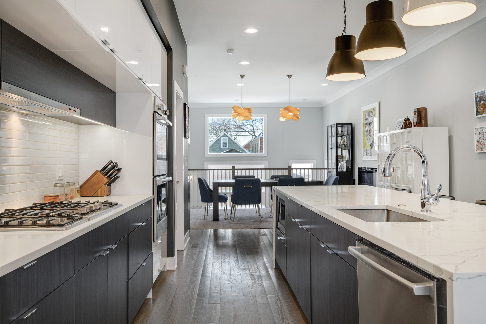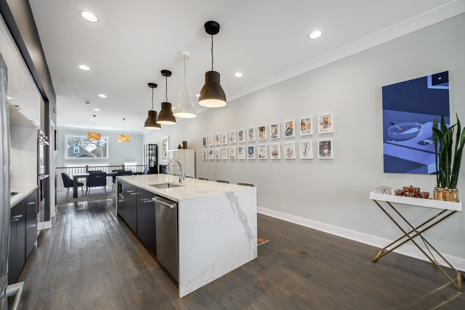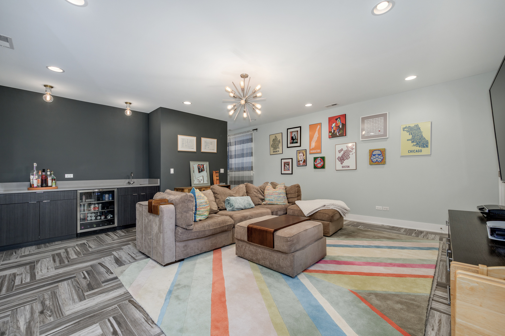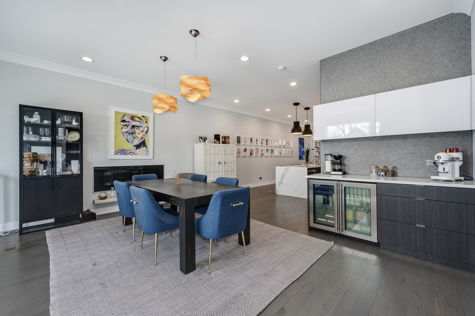 Nestled in the heart of the Bridgeport Arts District, sits this 3700+ square foot, better than new single-family home. With wonderfully large east and west facing windows, your main living level features bright and open living spaces, perfect for entertaining. The front living area offers floor to ceiling custom bookcases, offering the perfect place for storage and display. A very well-appointed, centrally located kitchen features double ovens, ample cabinetry and pantry storage, as well as a large island with bar seating. The greatroom and dining area offers a fireplace a well as additional cabinetry and counter space, dual wine and beverage refrigeration, along with a stylish backsplash. Completely open from front to back, the main level gets wonderful amounts of natural light and allows for an easy layout for hosting and entertaining. A perfectly updated designer powder room completes the main floor. The second level has three gracious bedroom suites including the primary bedroom with a full wall of custom closet space, along with a spa-like bathroom with a separate shower, soaking tub, and dual vanity. The perfectly appointed lower level has two more bedrooms, one currently outfitted as a home gym, plus another cozy family room with a wet bar and beverage center. The stylishly designed and hardscaped backyard is the perfect place for summer gatherings and also leads to the two-car garage. An easy walk to so many great restaurants, parks, and Guaranteed Rate Field!