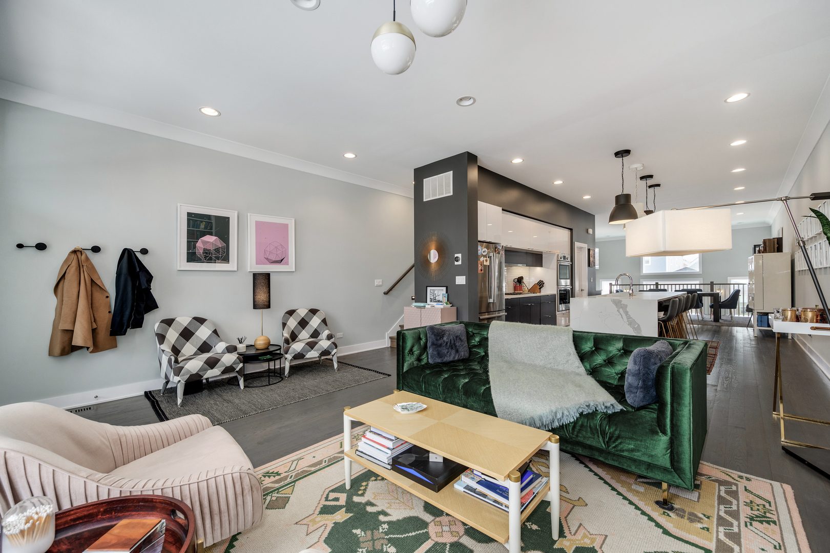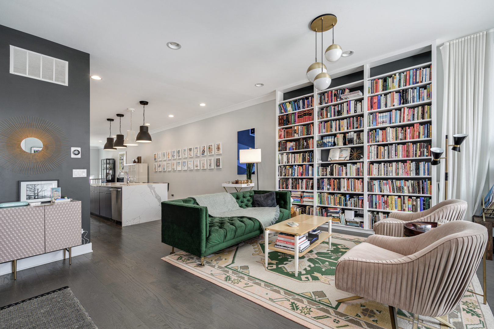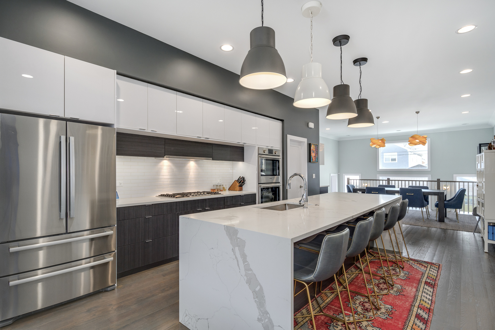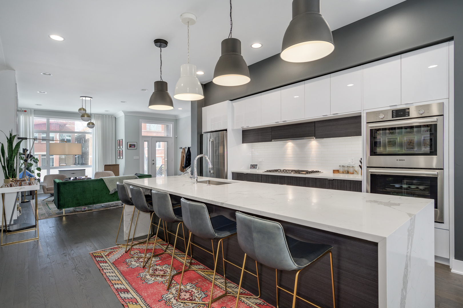 Nestled in the heart of the Bridgeport Arts District, sits this 3700+ square foot, better than new single-family home. With wonderfully large east and west facing windows, your main living level features bright and open living spaces, perfect for entertaining. The front living area offers floor to ceiling custom bookcases, offering the perfect place for storage and display. A very well-appointed, centrally located kitchen features double ovens, ample cabinetry and pantry storage, as well as a large island with bar seating. The greatroom and dining area offers a fireplace a well as additional cabinetry and counter space, dual wine and beverage refrigeration, along with a stylish backsplash. Completely open from front to back, the main level gets wonderful amounts of natural light and allows for an easy layout for hosting and entertaining. A perfectly updated designer powder room completes the main floor. The second level has three gracious bedroom suites including the primary bedroom with a full wall of custom closet space, along with a spa-like bathroom with a separate shower, soaking tub, and dual vanity. The perfectly appointed lower level has two more bedrooms, one currently outfitted as a home gym, plus another cozy family room with a wet bar and beverage center. The stylishly designed and hardscaped backyard is the perfect place for summer gatherings and also leads to the two-car garage. An easy walk to so many great restaurants, parks, and Guaranteed Rate Field!