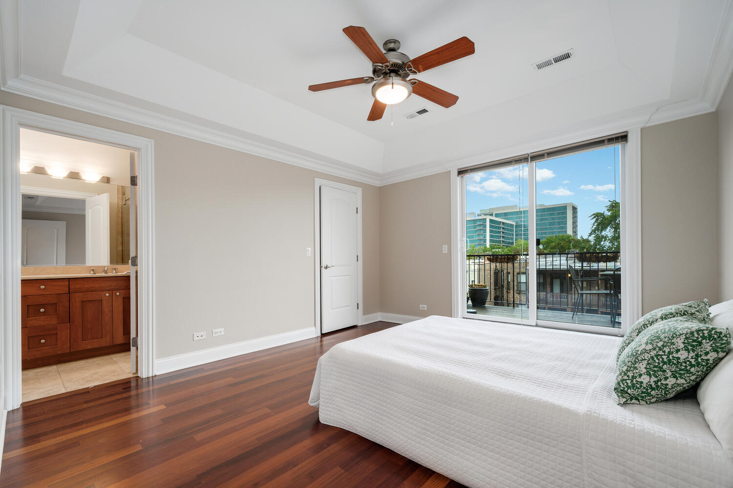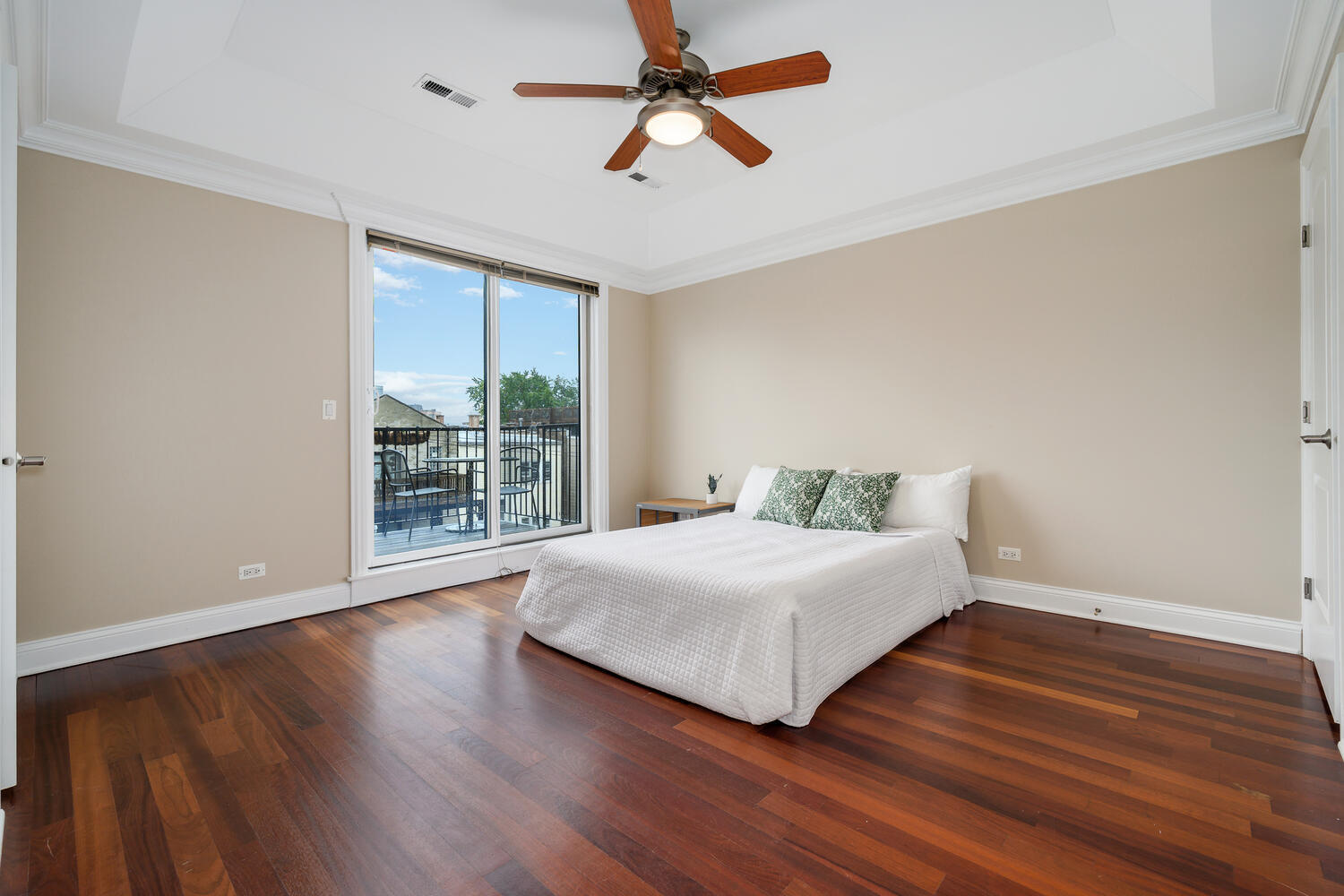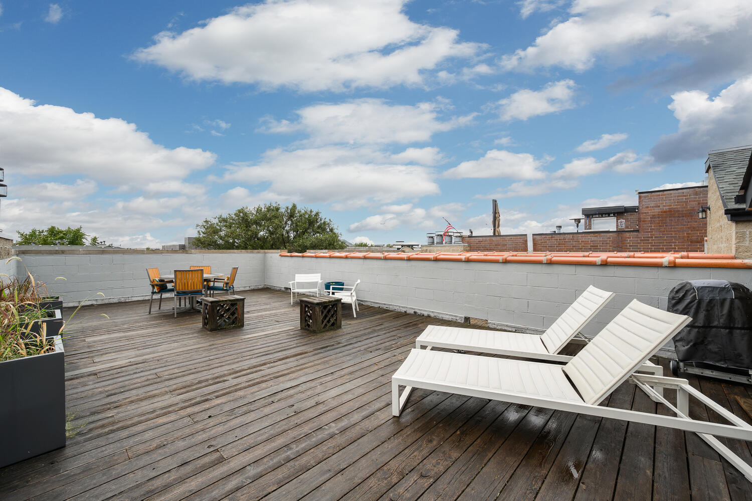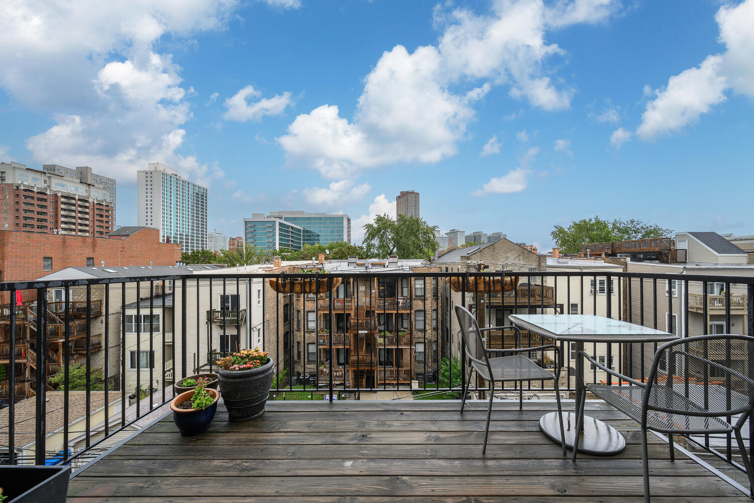 Stunning top-floor Wrigleyville condo! Bathed in natural light and tucked in an intimate building on a one-way street (not on the EL side), this home boasts an open layout with a spacious living and dining area and a large, well-appointed kitchen. Sophisticated touches include crown molding, a custom fireplace mantle, and gleaming hardwood floors throughout. The primary suite features a dual vanity, steam shower, and soaking tub. Enjoy the ultimate in city living with your own private roof deck-perfect for entertaining, relaxing, or taking in stunning skyline views on one side and Wrigley Field on the other. Plus, attached garage parking offers unmatched convenience. In-unit laundry, abundant storage, and low assessments round out the home. Steps from Wrigley Field, Whole Foods, restaurants, shops, the lake, and CTA.