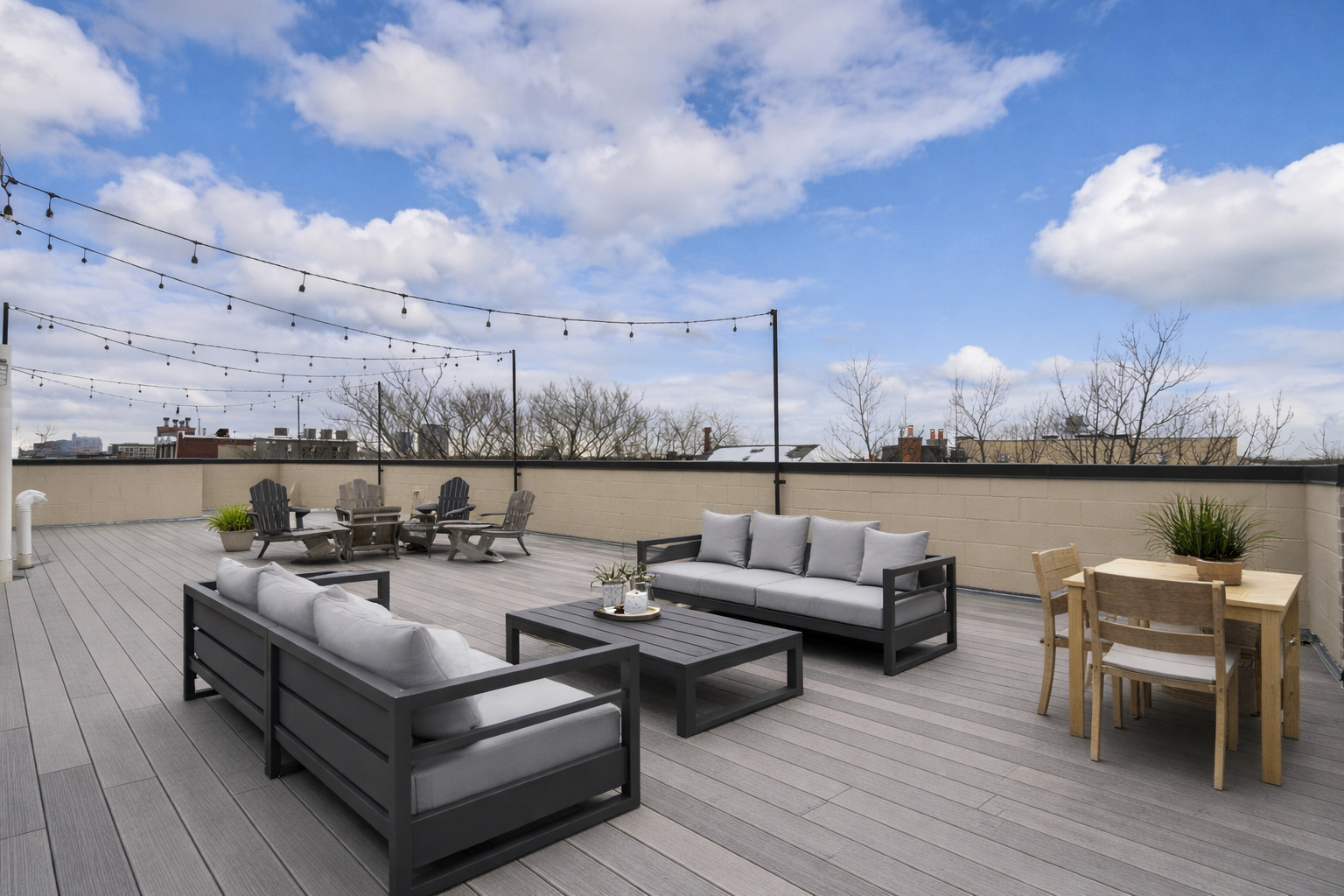 Set in an absolute A+ Lincoln Park location, this duplex-up penthouse is located in a coveted elevator building on a quiet, tree-lined street. Occupying the entire top floor, the residence offers rare 360-degree city views and exceptional natural light throughout. Designed with a refined modern aesthetic, this one-of-a-kind home features expansive open-concept interiors and multiple private outdoor spaces, creating a seamless indoor-outdoor living experience. As the only residence on the floor, the home provides an uncommon level of privacy, paired with skyline views from every exposure. The thoughtfully designed layout is both expansive and intentional, centered around a private north-facing terrace that flows directly from the living room, dining area, and kitchen-ideal for everyday living and entertaining. A dedicated rooftop deck is the most sensational deck you will see and offers an additional outdoor retreat with panoramic city views. The primary suite is privately positioned on the upper level, while three additional bedrooms are located on the lower level, offering ideal separation of living and sleeping spaces. The building's elevator provides direct access to both levels of the residence, enhancing both convenience and exclusivity. This penthouse delivers a rare combination of light, privacy, elevator access, and outdoor living in one of Chicago's most desirable neighborhoods, just steps from top-rated Lincoln Park schools, Oz Park, and some of the area's best dining and lifestyle amenities.