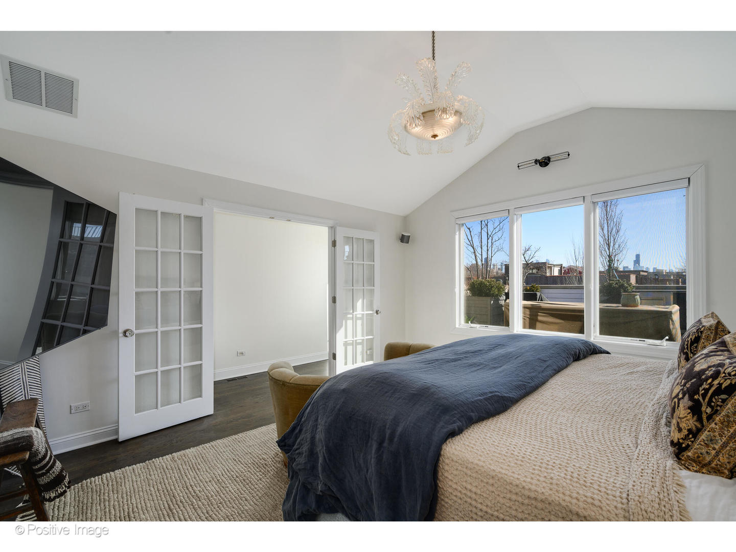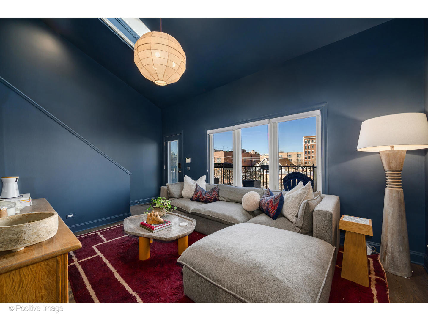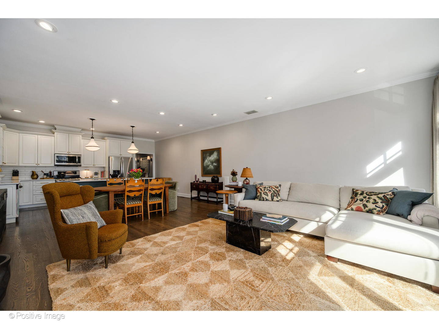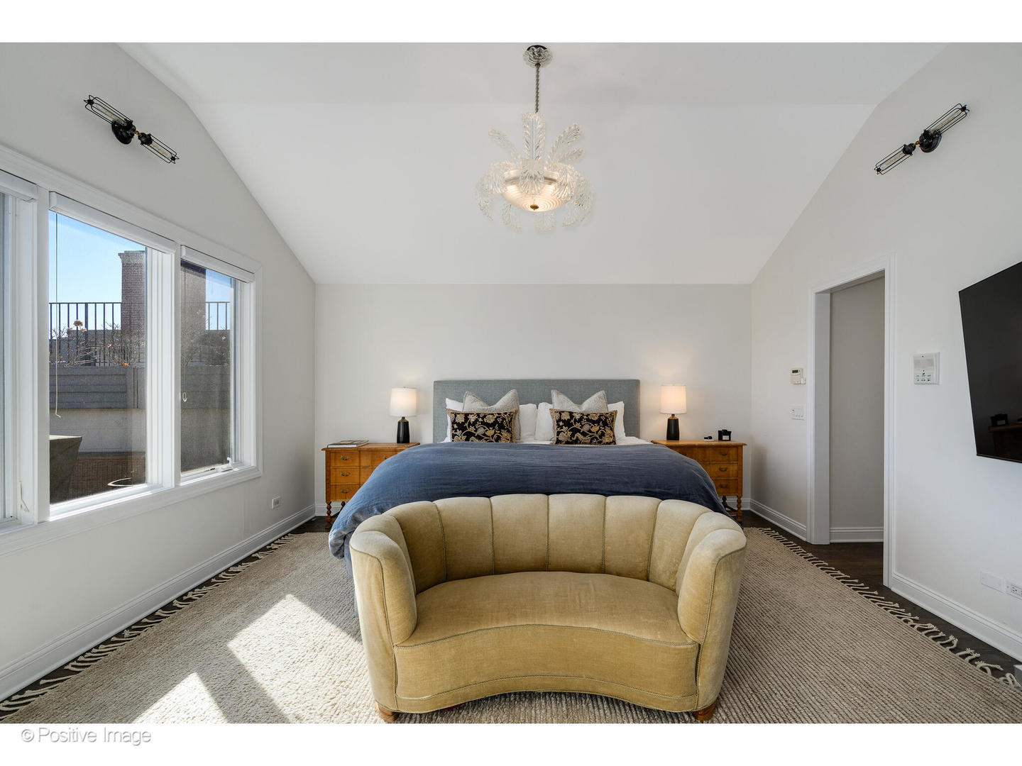 This is a rare opportunity to own an extra-wide Lincoln Park duplex-up in one of Chicago's most coveted neighborhoods, set on a quiet, tree-lined street with incredible outdoor space! Originally built by Environs, this three-bedroom, two-bath residence lives like a single-family home, offering exceptional width, soaring ceilings, and thoughtfully curated designer finishes throughout. The main level greets you with a sun-filled, open-concept living and dining space anchored by a fireplace framed in Calacatta Viola marble. The kitchen is designed for both everyday living and entertaining, featuring quartz countertops, an oversized island with bar seating, Rejuvenation hardware, Newport Brass faucet, and Visual Comfort pendant lighting. Rich hardwood floors run throughout, enhancing the home's timeless yet contemporary aesthetic. Two main-level bedrooms provide flexible living options. The chic first bedroom boasts a spacious walk-in closet and Soho Home light fixture, while the second features vaulted ceilings and a more intimate, design-forward atmosphere - ideal as a guest room, office, or den - with direct access to a private secondary balcony. An updated hall bath and abundant storage complete the level. Upstairs, the primary suite offers a serene retreat with vaulted ceilings and skyline views. The spa-inspired bath is appointed with dual vanities featuring Rejuvenation mirrors, a soaking tub, and a separate walk-in shower, along with generous built-in storage. A substantial walk-in closet, laundry area, and additional storage complete this private level. The fabulous expansive rooftop terrace is accessible from the second floor without passing through the primary bedroom. With sweeping skyline views, a built out outdoor kitchen, dedicated lounge and dining areas, a built-in irrigation system, and a retractable roof, this space is an urban oasis designed for seamless indoor-outdoor entertaining. One garage parking spot included with communal storage located above garage! Just steps from the dining, shopping, and neighborhood amenities along Clark, Broadway and Halsted, easy public transit, and PK-8 Alcott College Prep, this design-forward residence combines scale, style, and exceptional outdoor living in the heart of Lincoln Park!