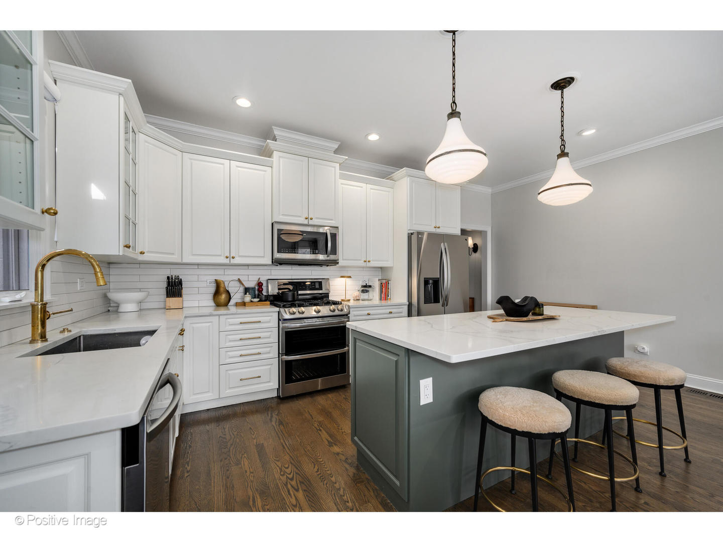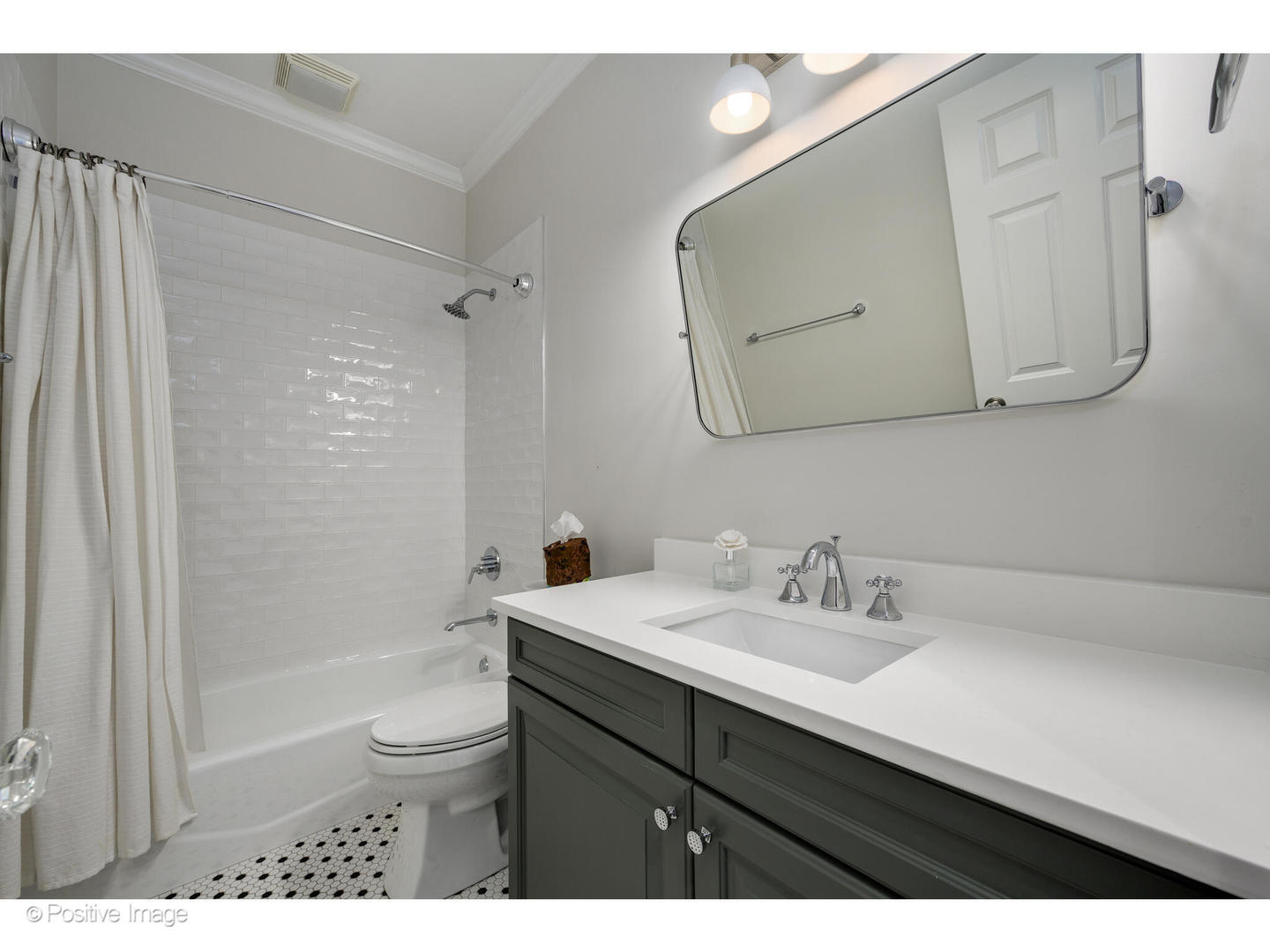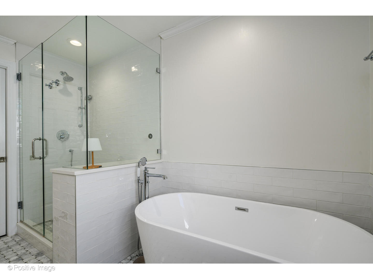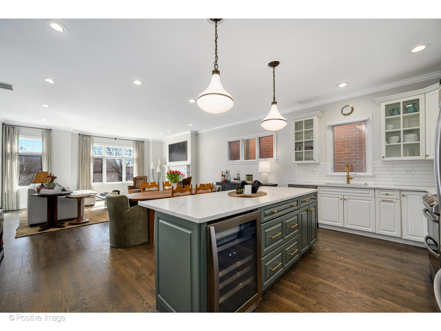 This is a rare opportunity to own an extra-wide Lincoln Park duplex-up in one of Chicago's most coveted neighborhoods, set on a quiet, tree-lined street with incredible outdoor space! Originally built by Environs, this three-bedroom, two-bath residence lives like a single-family home, offering exceptional width, soaring ceilings, and thoughtfully curated designer finishes throughout. The main level greets you with a sun-filled, open-concept living and dining space anchored by a fireplace framed in Calacatta Viola marble. The kitchen is designed for both everyday living and entertaining, featuring quartz countertops, an oversized island with bar seating, Rejuvenation hardware, Newport Brass faucet, and Visual Comfort pendant lighting. Rich hardwood floors run throughout, enhancing the home's timeless yet contemporary aesthetic. Two main-level bedrooms provide flexible living options. The chic first bedroom boasts a spacious walk-in closet and Soho Home light fixture, while the second features vaulted ceilings and a more intimate, design-forward atmosphere - ideal as a guest room, office, or den - with direct access to a private secondary balcony. An updated hall bath and abundant storage complete the level. Upstairs, the primary suite offers a serene retreat with vaulted ceilings and skyline views. The spa-inspired bath is appointed with dual vanities featuring Rejuvenation mirrors, a soaking tub, and a separate walk-in shower, along with generous built-in storage. A substantial walk-in closet, laundry area, and additional storage complete this private level. The fabulous expansive rooftop terrace is accessible from the second floor without passing through the primary bedroom. With sweeping skyline views, a built out outdoor kitchen, dedicated lounge and dining areas, a built-in irrigation system, and a retractable roof, this space is an urban oasis designed for seamless indoor-outdoor entertaining. One garage parking spot included with communal storage located above garage! Just steps from the dining, shopping, and neighborhood amenities along Clark, Broadway and Halsted, easy public transit, and PK-8 Alcott College Prep, this design-forward residence combines scale, style, and exceptional outdoor living in the heart of Lincoln Park!