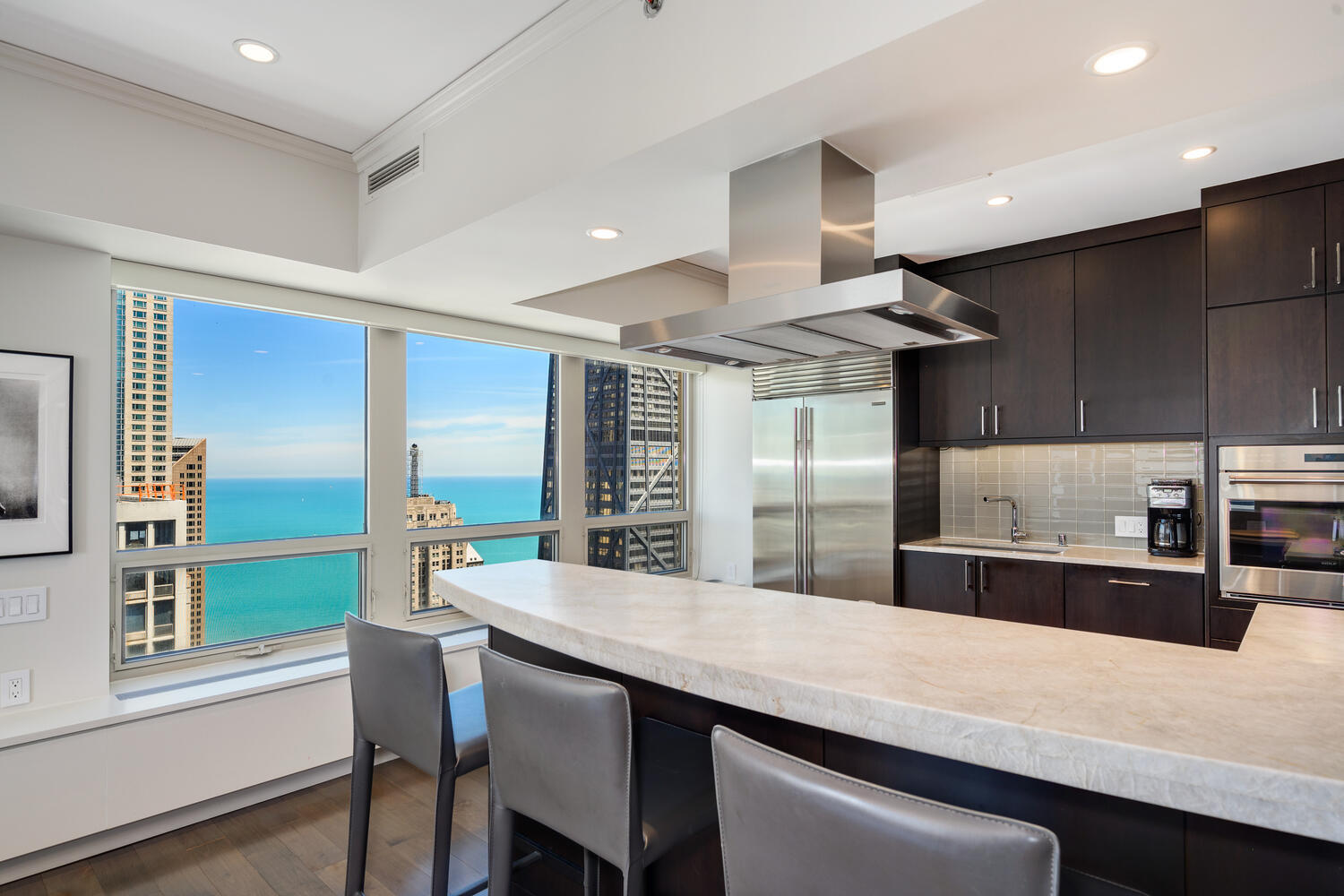 Welcome to the iconic Park Tower, where luxury living reaches unparalleled heights. This exceptional two-bedroom residence combines timeless elegance with modern sophistication. Meticulously redesigned, this home offers both style and substance at every turn. The chef-inspired kitchen boasts phenomenal views over the park and lake, complemented by top-of-the-line stainless steel appliances, a walk-in pantry/laundry room, and a breakfast bar with seating for four. The spacious dining room, with its north and west-facing views, seamlessly connects to the living room, which features a gorgeous felt tile wall and a cozy gas fireplace. Wide hardwood floors flow throughout the space, adding warmth and character, while thoughtful interior design touches enhance the refined atmosphere. The primary suite offers generous closet space and a beautifully appointed bath. The versatile office/second bedroom provides panoramic views stretching as far as the eye can see. But the true showstopper is the expansive wall of windows, offering sensational views stretching west, north, and northeast toward the sparkling lake. For added convenience, this home includes one garage parking space and access to the 5-star amenities of the Park Hyatt, including room service, a health club, and the renowned NoMi restaurant. Experience a true urban luxury retreat on Chicago's iconic Michigan Avenue, where sophistication and elegance are part of your everyday life.
