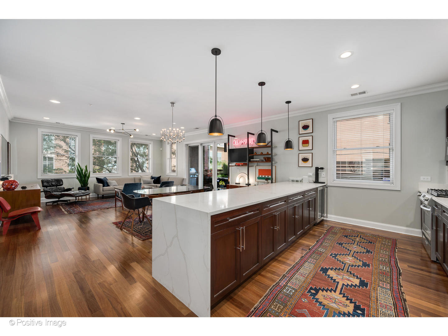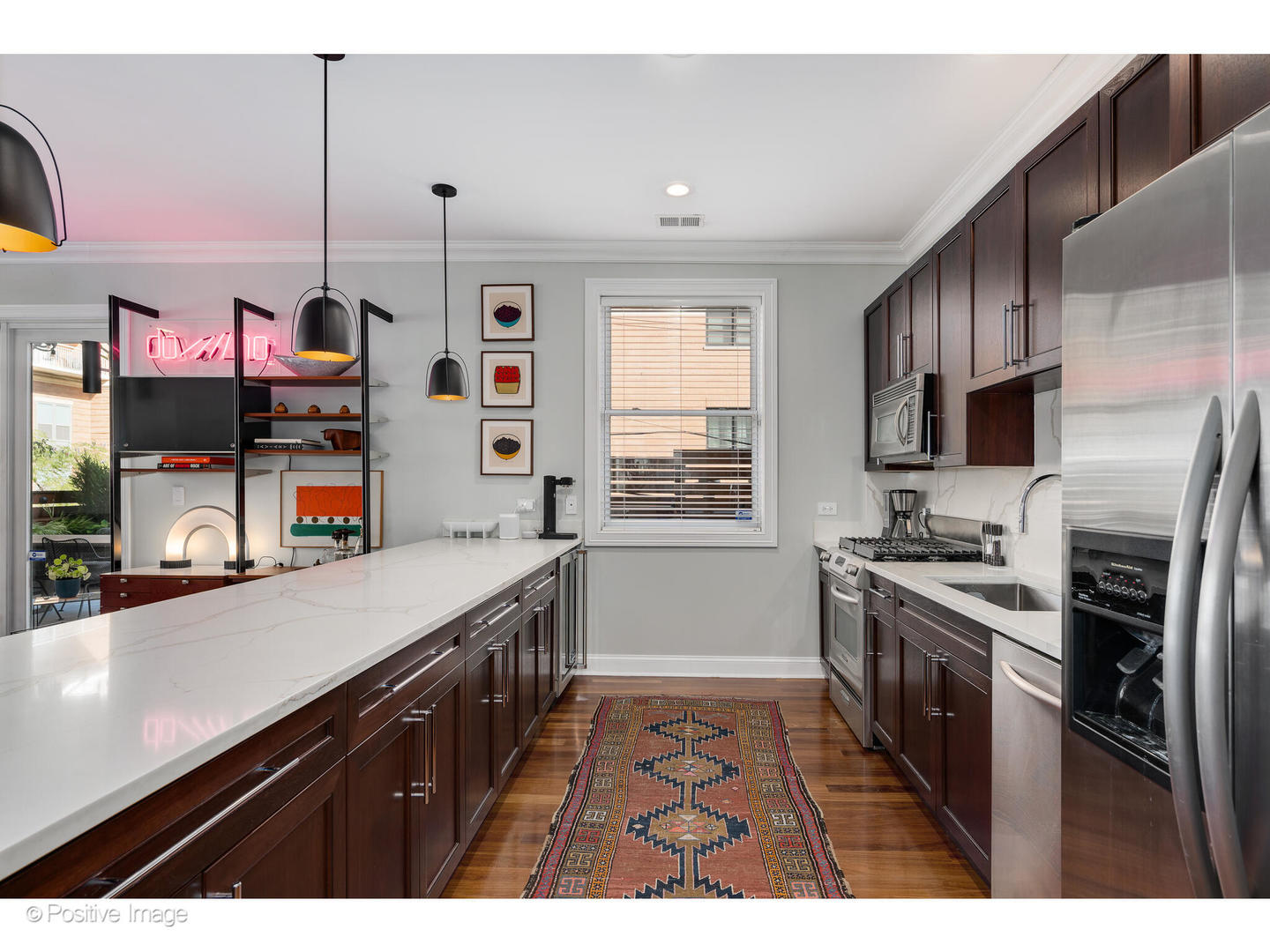 This spacious West Loop corner condo offers a massive 425 sq ft terrace in an exclusive 12-unit elevator building. Upon entry, the space is bathed in natural light and a generous foyer welcomes you. The recently renovated kitchen showcases a 14' quartz island that flows seamlessly into the dining and living space, perfect for entertaining. The expansive primary suite features a walk-in closet, dual vanity, and a separate tub and shower. Hardwood floors run throughout. Located in a top-tier, A+ location, just steps from Mary Bartelme Park, Madison Row, Starbucks, Mariano's, Whole Foods, Soho House, and the Fulton Market District. One attached indoor parking space is included.