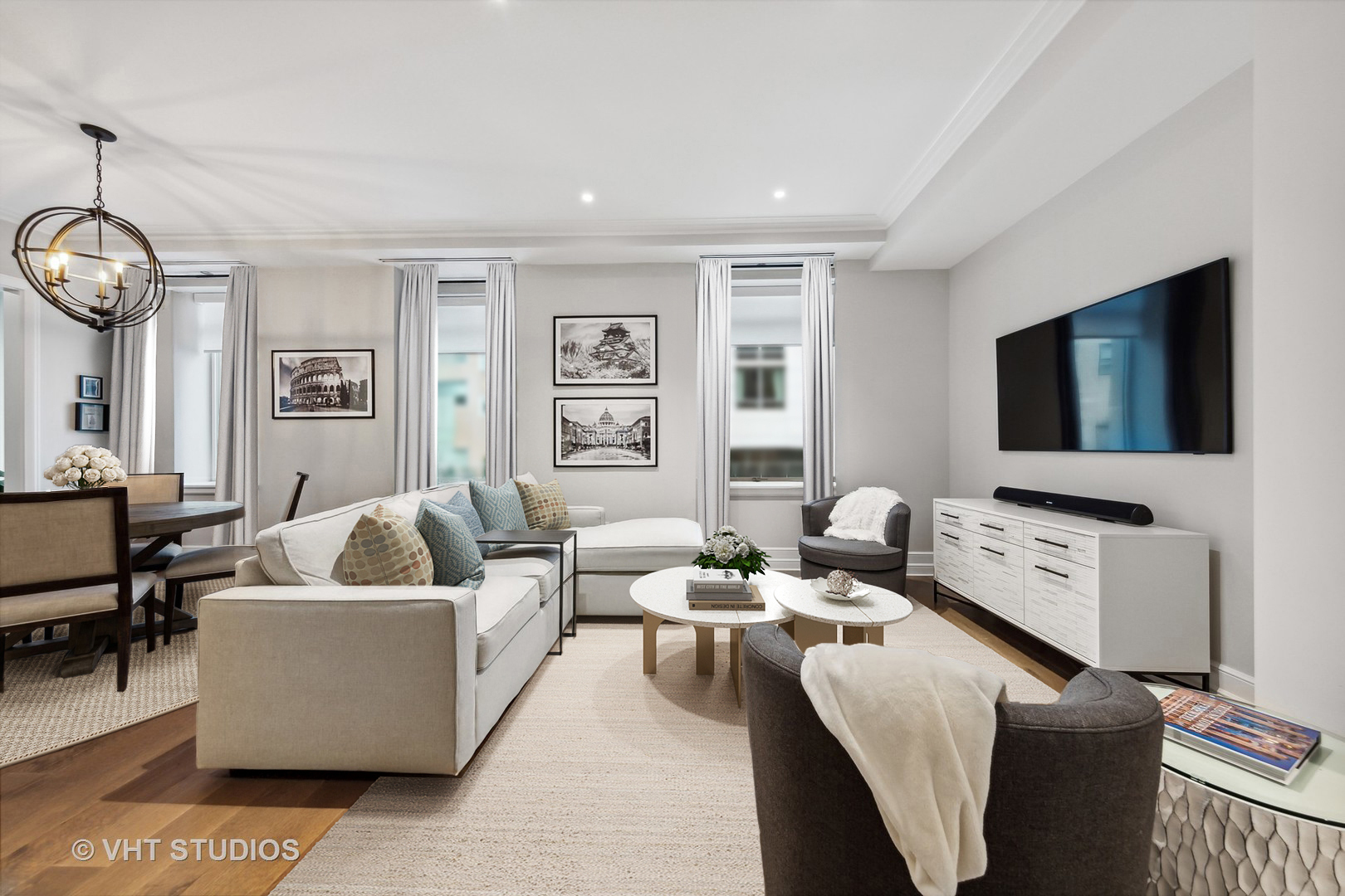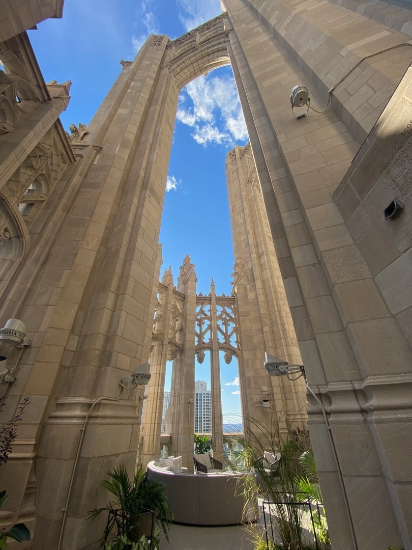 This exceptional residence in one of Chicago's most celebrated landmarks, Tribune Tower offers a rare opportunity to live within an architectural icon. This thoughtfully designed split two-bedroom home with a dedicated office delivers both comfort and sophistication in this irreplaceable Michigan Avenue setting. Refined classic finishes define the home, from wide-plank white oak flooring to custom millwork and cabinetry. The kitchen is beautifully appointed with SubZero, Wolf, and Miele appliances, complemented by quartz and marble surfaces. Every detail in this home exemplifies the sophistication and luxury. Residents enjoy access to more than 55,000 square feet of amenities spanning four levels. The 25th-floor Crown Terrace offers an unforgettable backdrop for entertaining, framed by Tribune Tower's historic flying buttresses and sweeping city views. The 7th-floor indoor pool and sundeck provide a private retreat overlooking the iconic Chicago Tribune sign, with spaces thoughtfully designed for lounging and grilling. A private elevated park on the 3rd floor invites both work and leisure, offering social gathering areas, gaming and billiards, while the 2nd floor is dedicated to wellness with an indoor golf simulator, fitness center, spa treatment rooms, steam rooms, and saunas. The historic Michigan Avenue entrance reflects the building's storied past and connects seamlessly to the modern Illinois Street entry. A singular opportunity to live along Michigan Avenue, where legacy architecture and modern living come together beautifully.